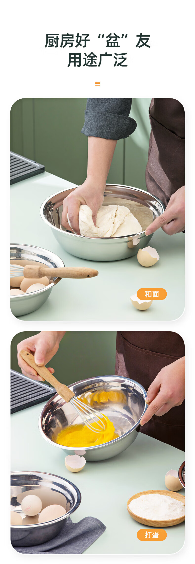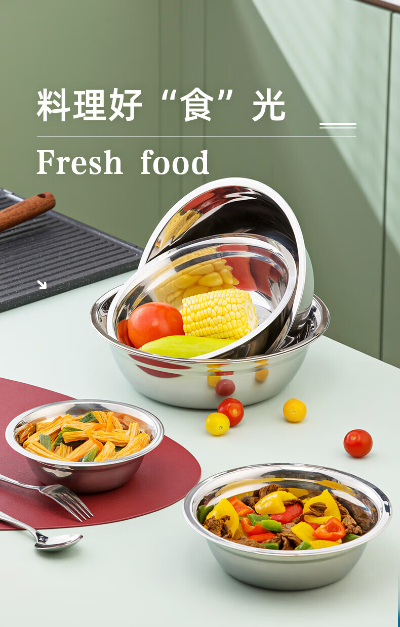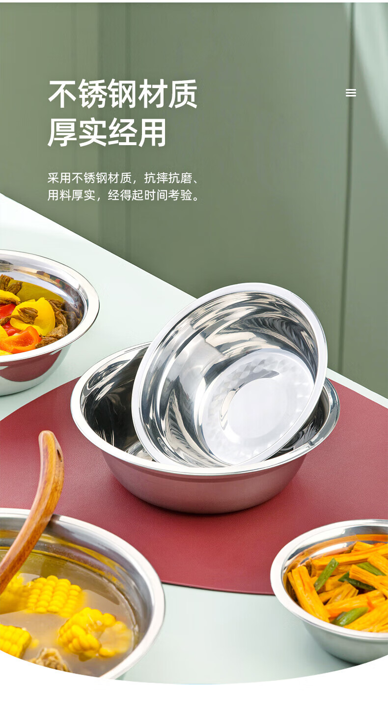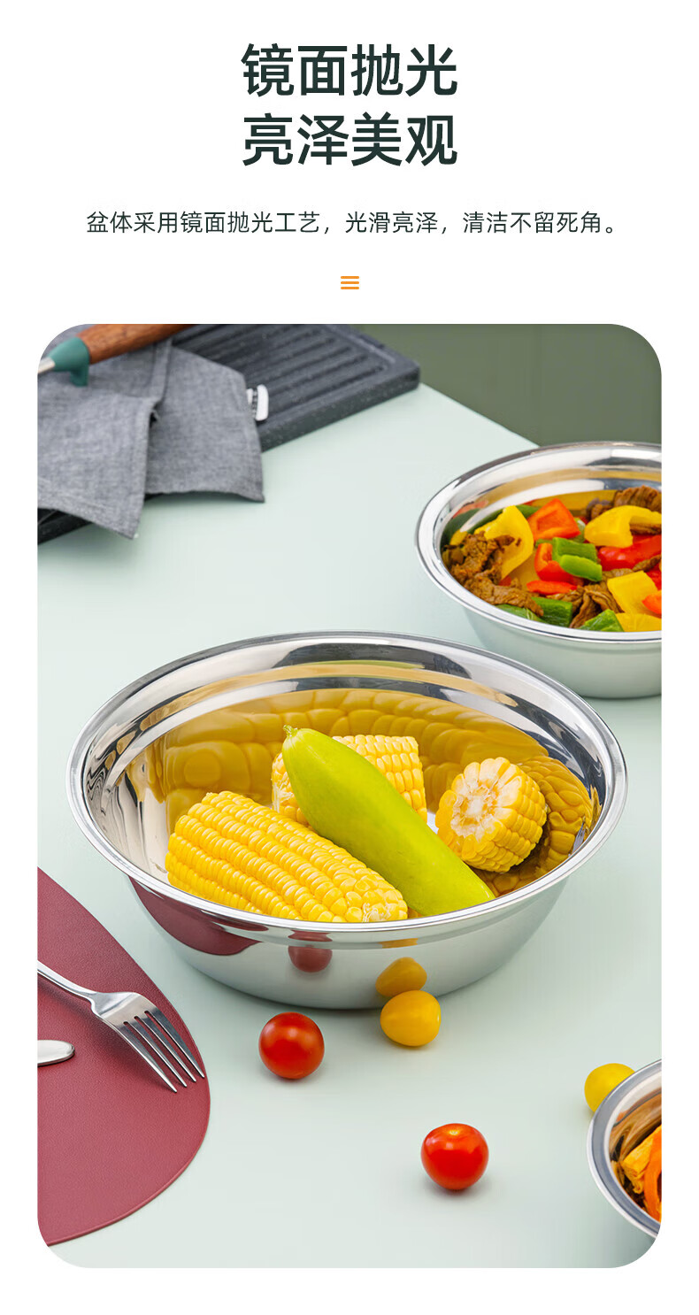 Camellia (CHAHUA) Zhenxiang stainless steel basin thickened flat bottom soup basin kitchen egg beating and basin washing vegetable baking basin 24 cm