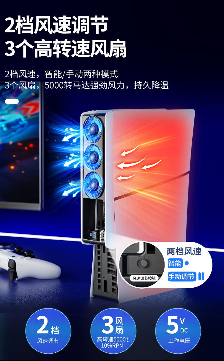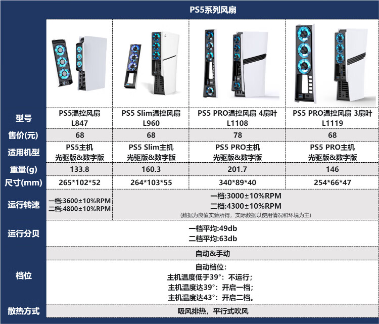 Good Value (IINE) PS5 Slim/PRO Cooling Fan Intelligent Temperature Control Cooling for SLIM Game Console Thin and Light Version Optical Drive/Digital Version Universal PS5 Accessories