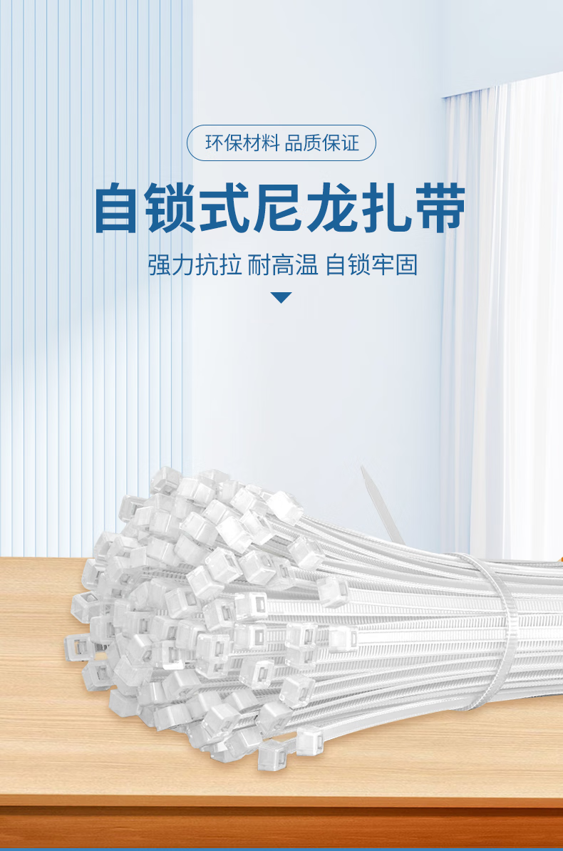 Jiuqiangu self-locking nylon cable ties, cable management tape, host installation, gardening, cable desktop cable management, wire binding, 4.8*400mm national standard white, 100 pieces/pack 0410