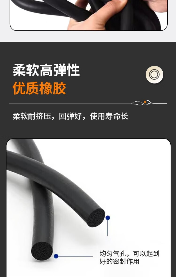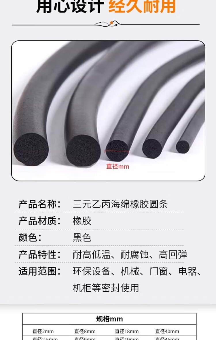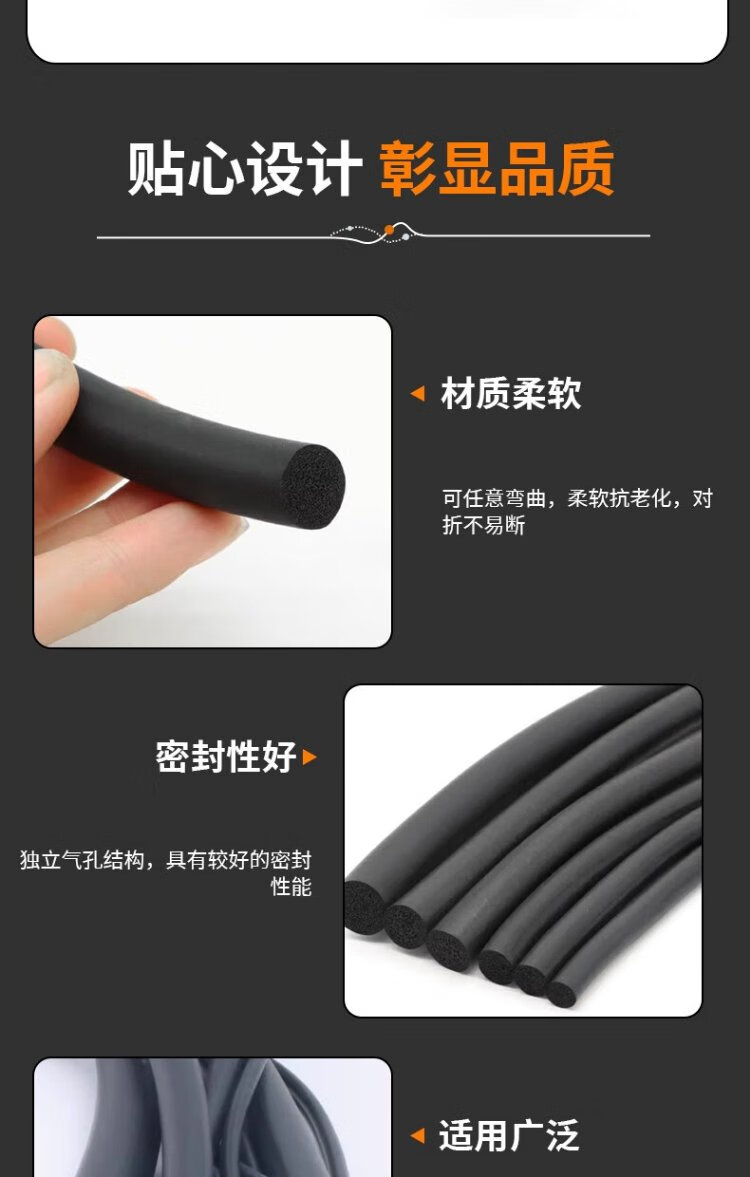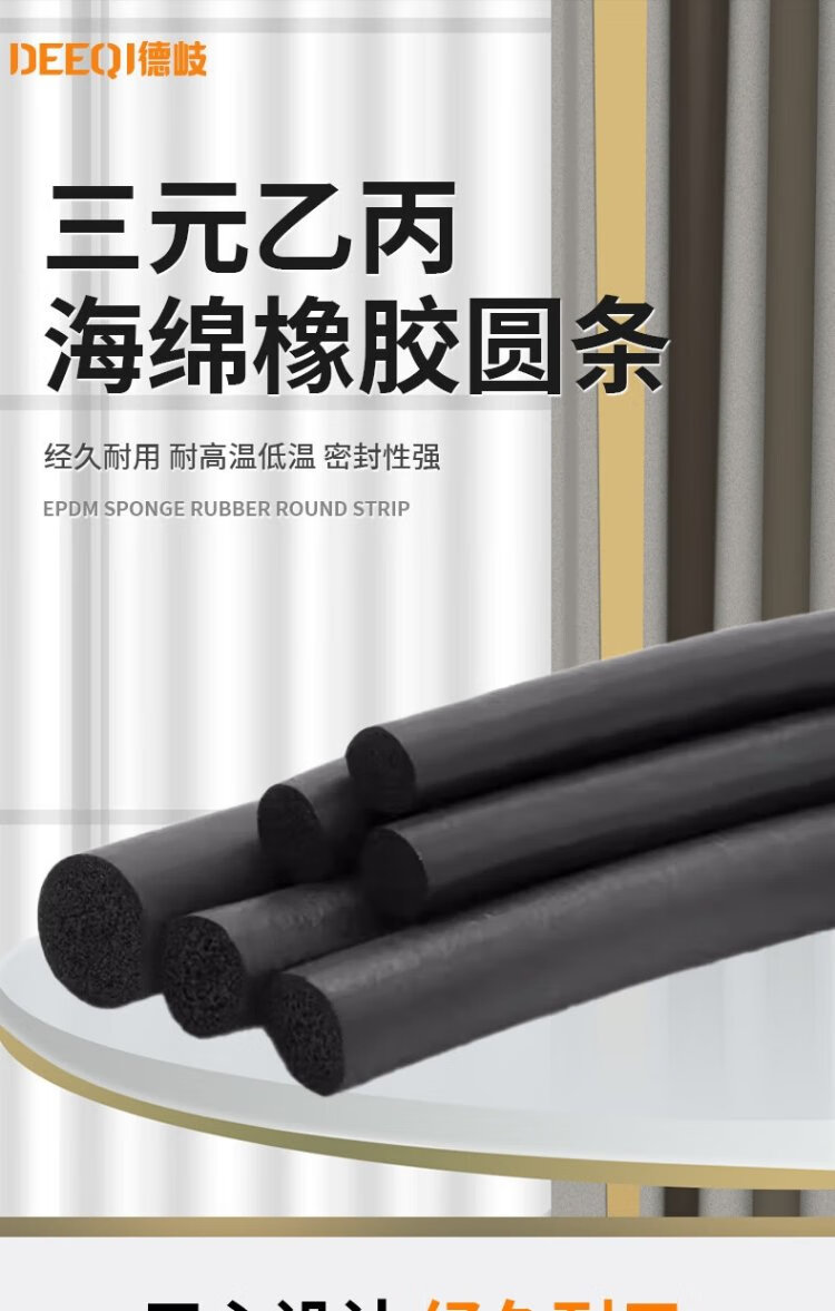 Deqi EPDM sponge rubber round strip foam sealing strip black O-shaped strip sound insulation sealing foam strip diameter 2mm (ten meter price)