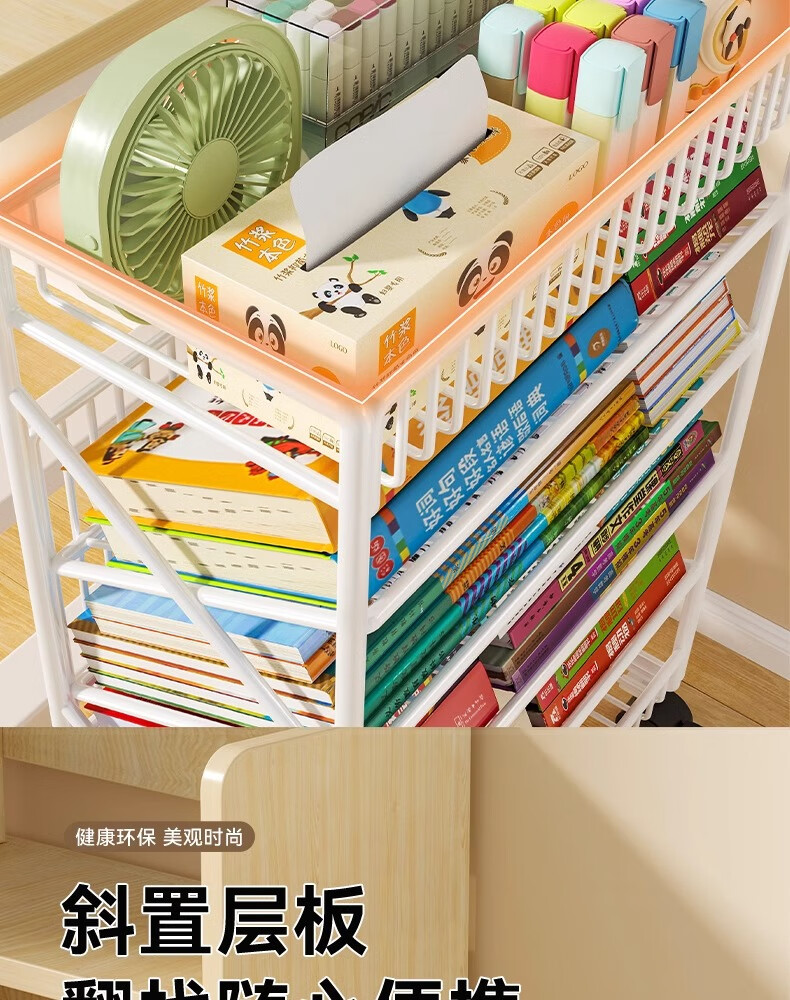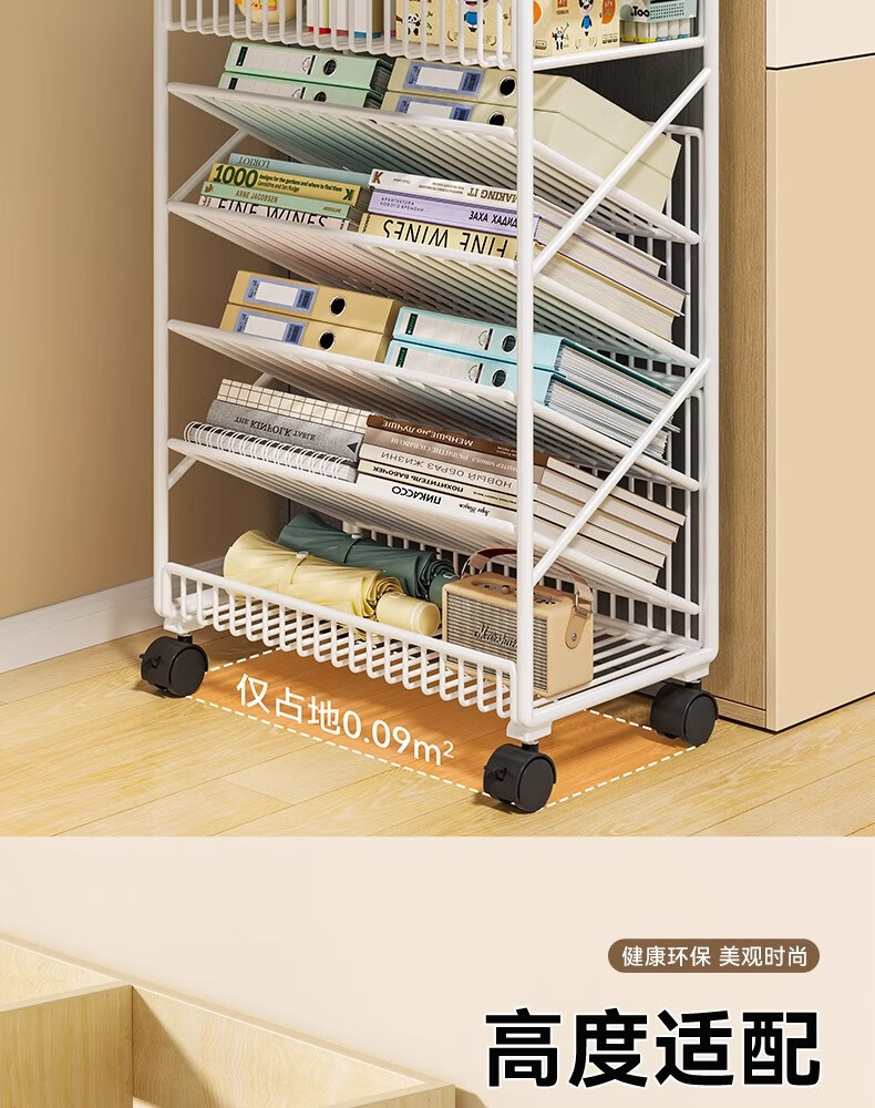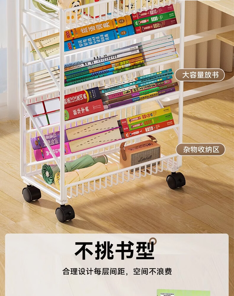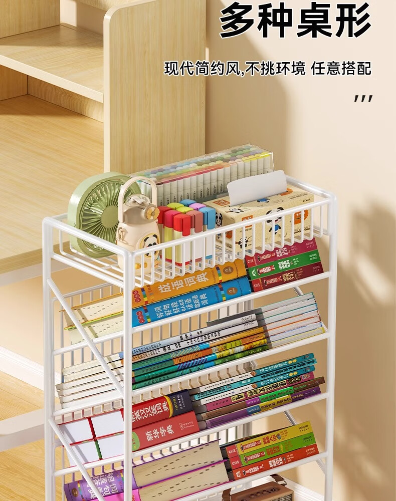 Jungle movable tableside storage small bookshelf classroom desk student books wheeled storage rack bookshelf five layers black