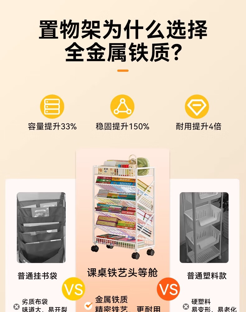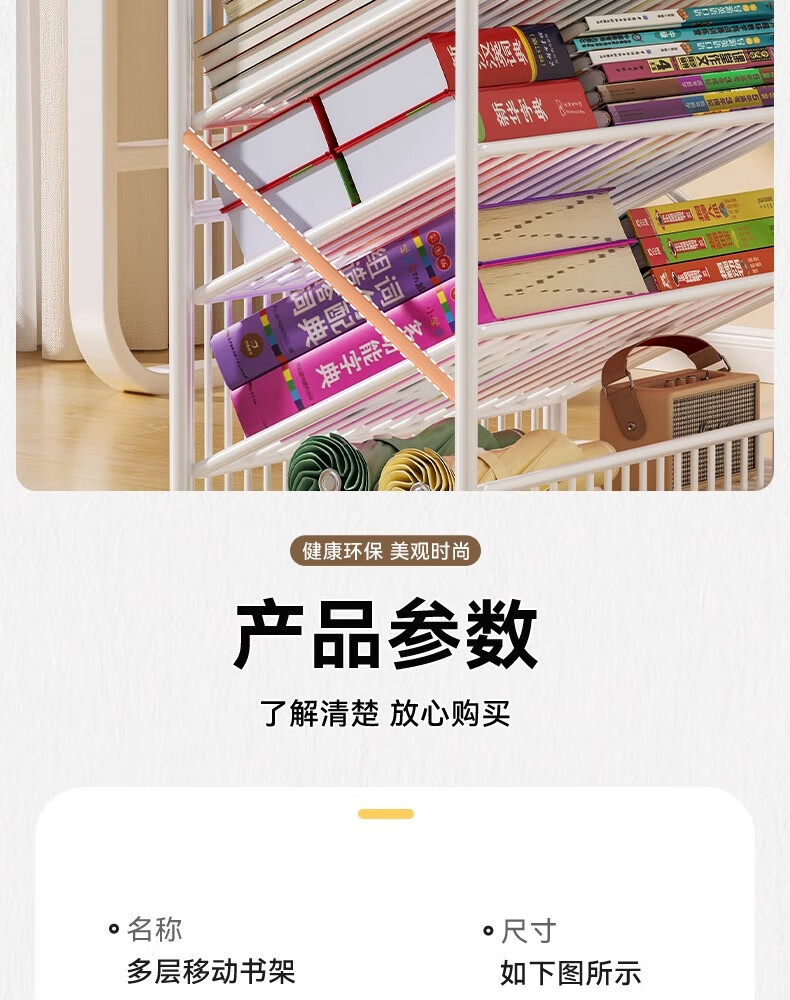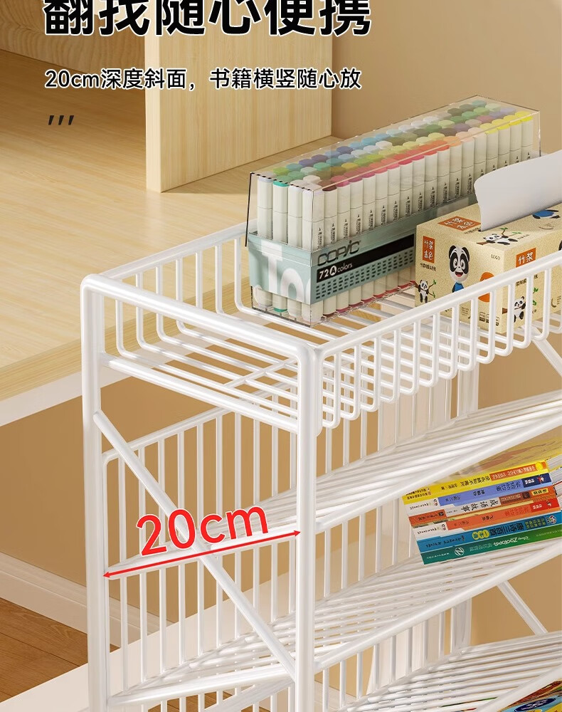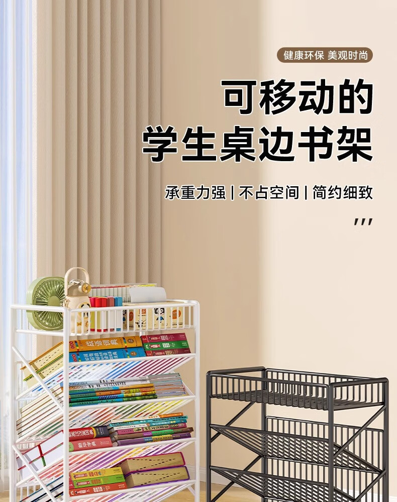 Jungle movable tableside storage small bookshelf classroom desk student books wheeled storage rack bookshelf five layers black