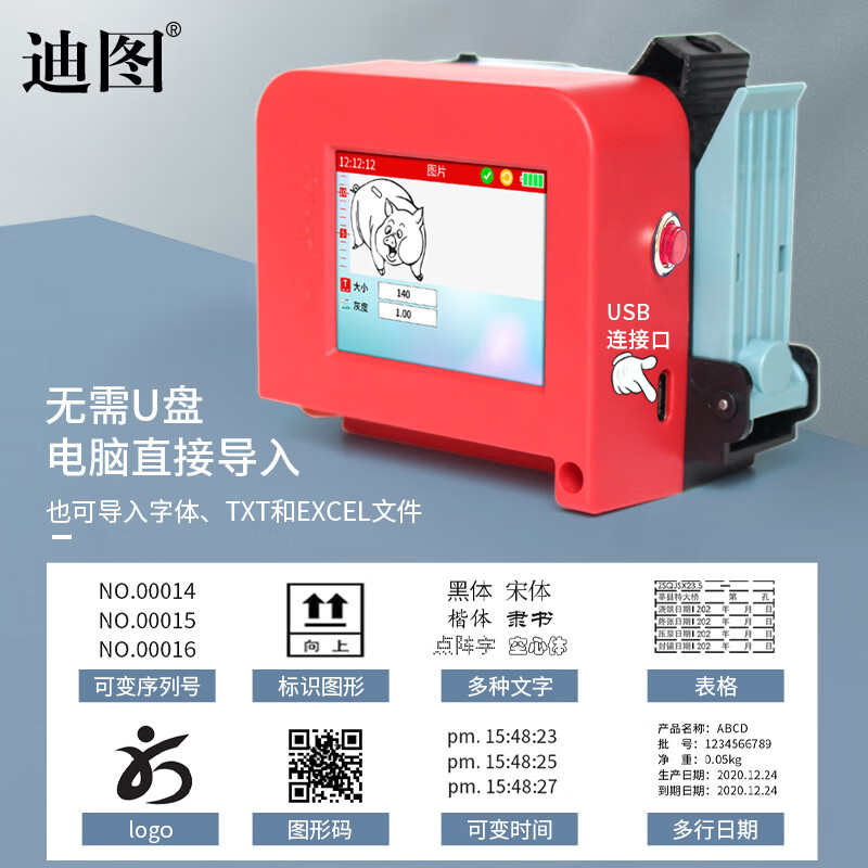 Ditu inkjet printer mini handheld small fully automatic intelligent coder prints production date price label bottle cap food packaging bag concave and convex surface large screen mini with black high-attachment ink cartridge