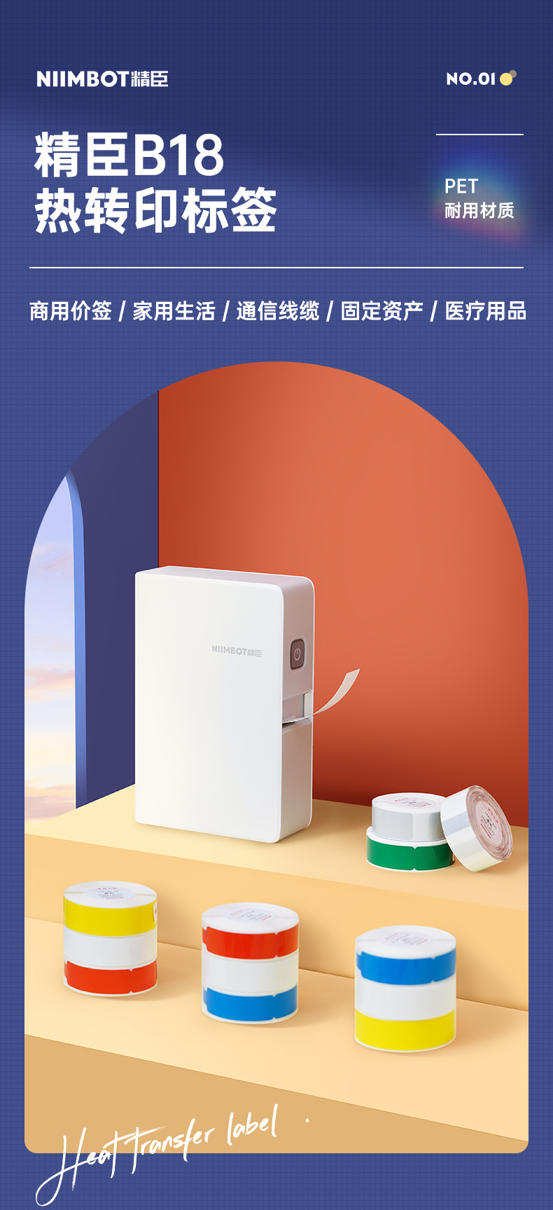 Jingchen B18 commercial office label paper, clothing retail department store price label sticker, self-adhesive waterproof fixed asset label machine printing paper 12*25-220 sheets-white
