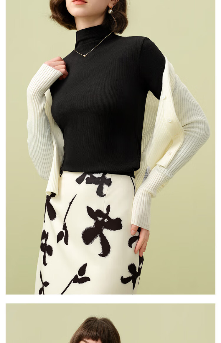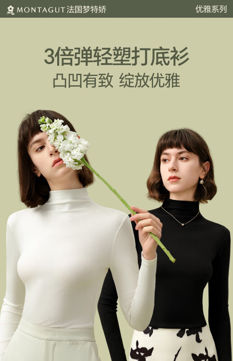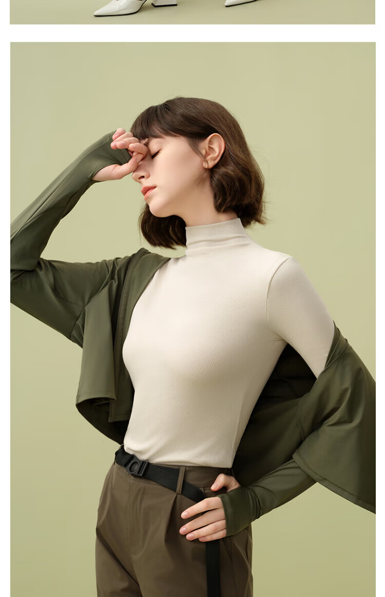 Montagut Half Turtle Collar Bottoming Shirt Women's Slim Fit Spring and Autumn Thin Solid Color Long Sleeve Underwear Modal Cotton Style Top