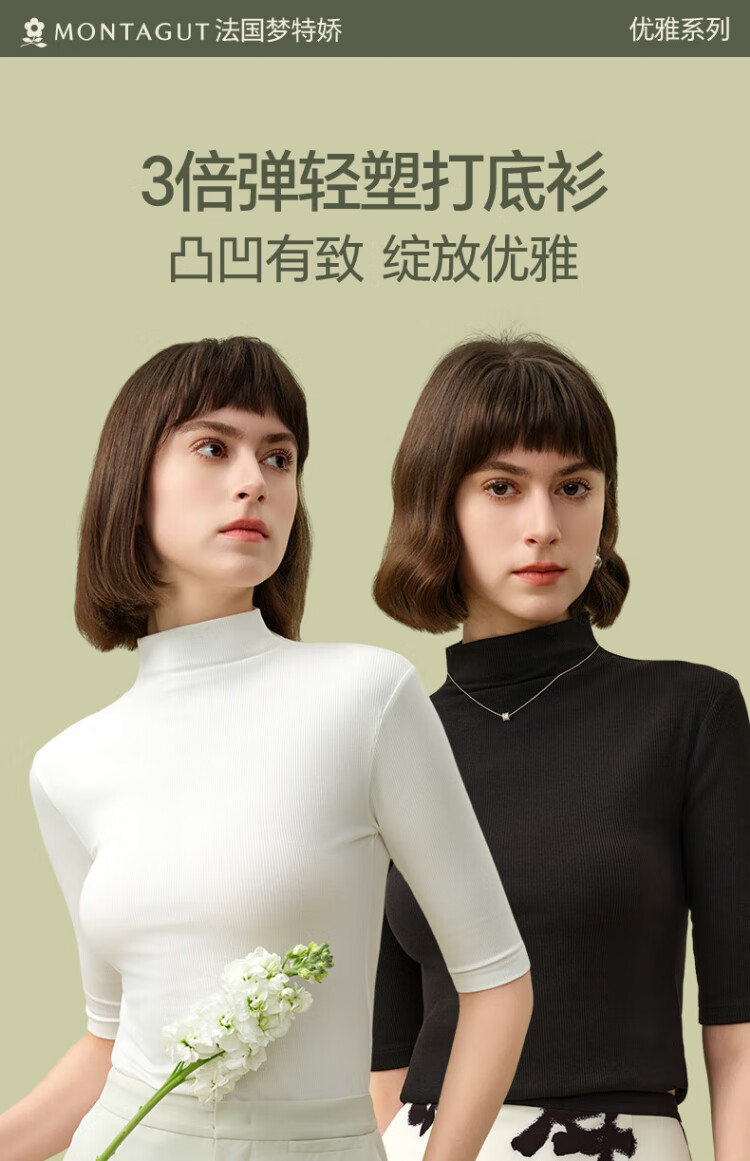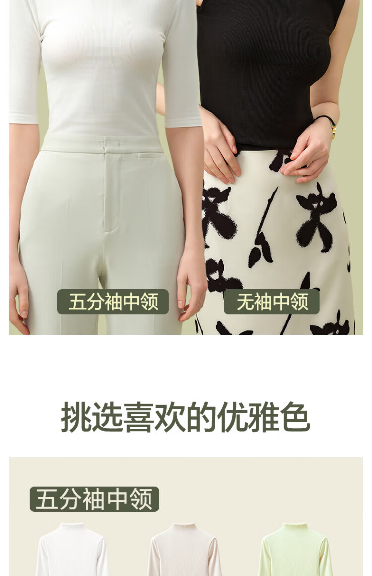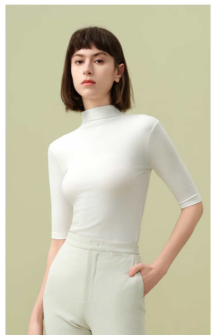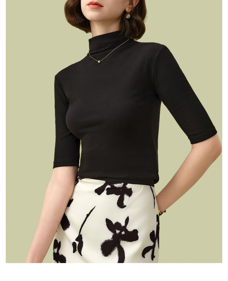 Montagut modal cotton half turtleneck bottoming shirt for women, slim and fashionable quarter-sleeved thin short-sleeved half-sleeved bottoming shirt