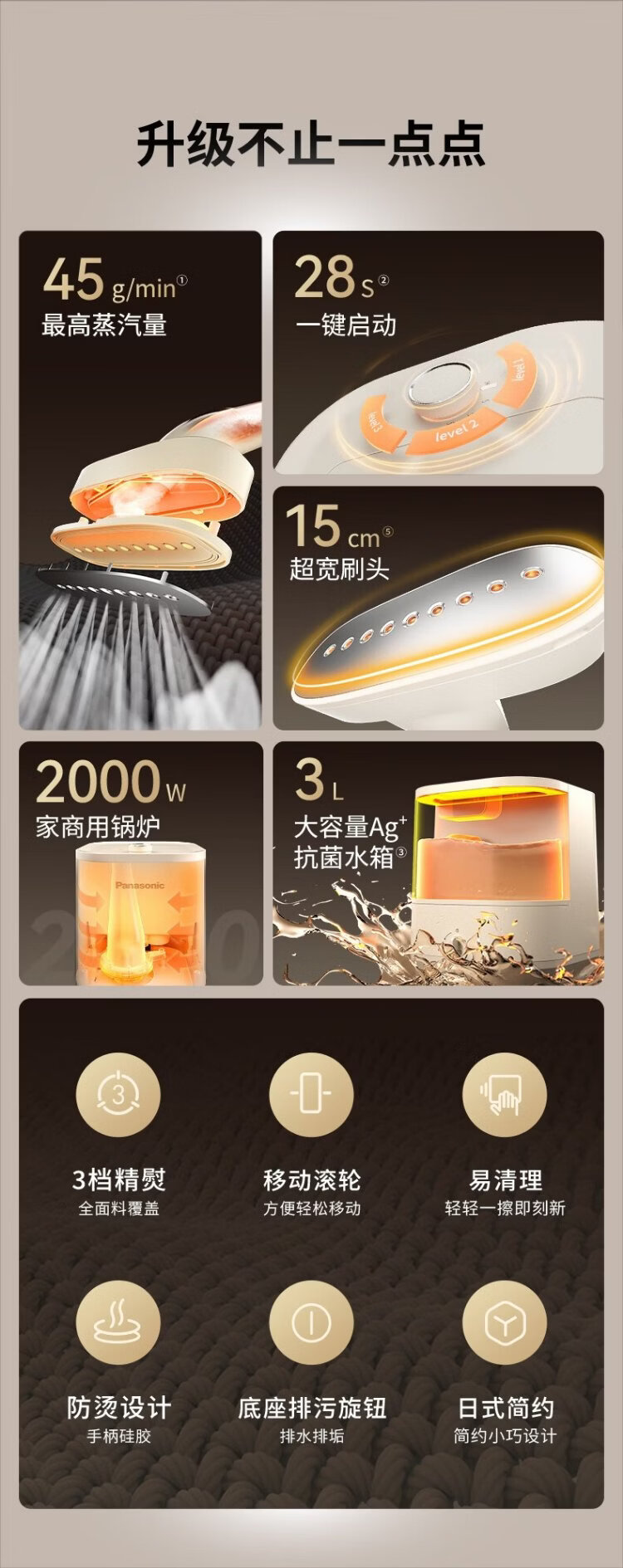 Panasonic ironing artifact high-end vertical garment ironing machine household handheld ironing machine supercharged large steam electric iron ironing clothes efficient wrinkle removal antibacterial water tank NI-GSJ050-C