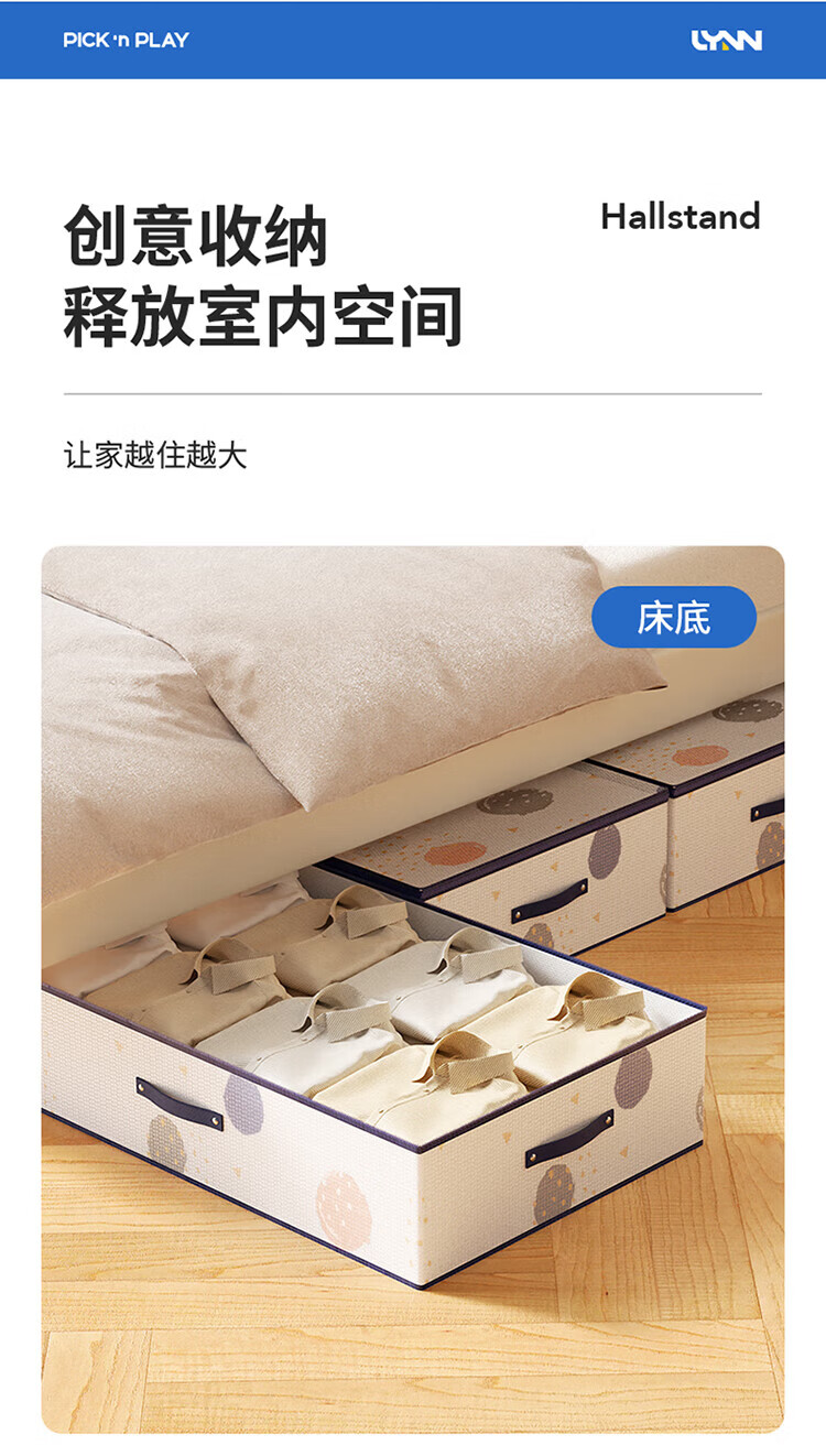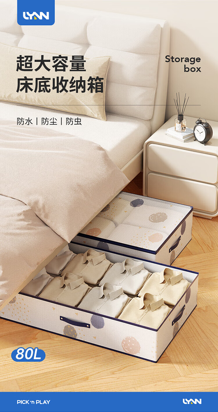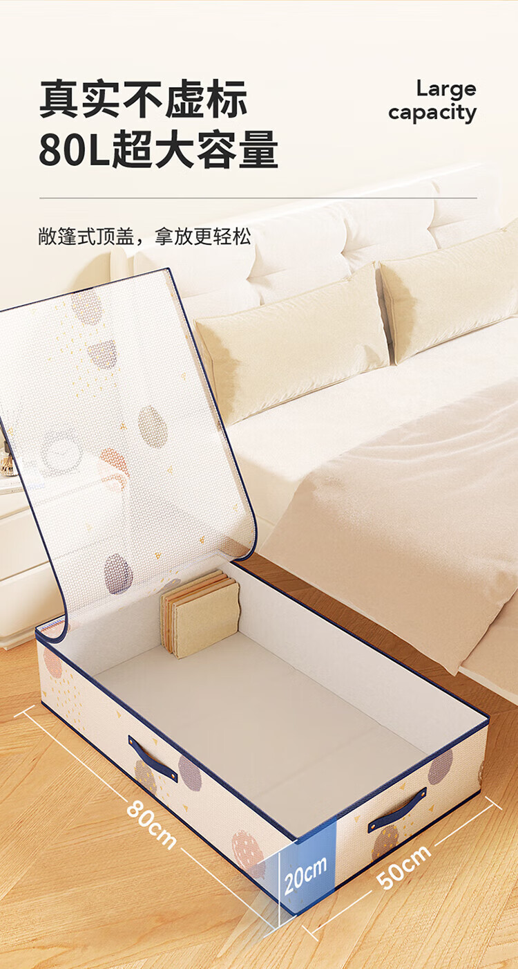 LYNN bed storage box, clothing, quilt, shoes, toy storage box, flat folding storage box, large size 80L, 1 pack