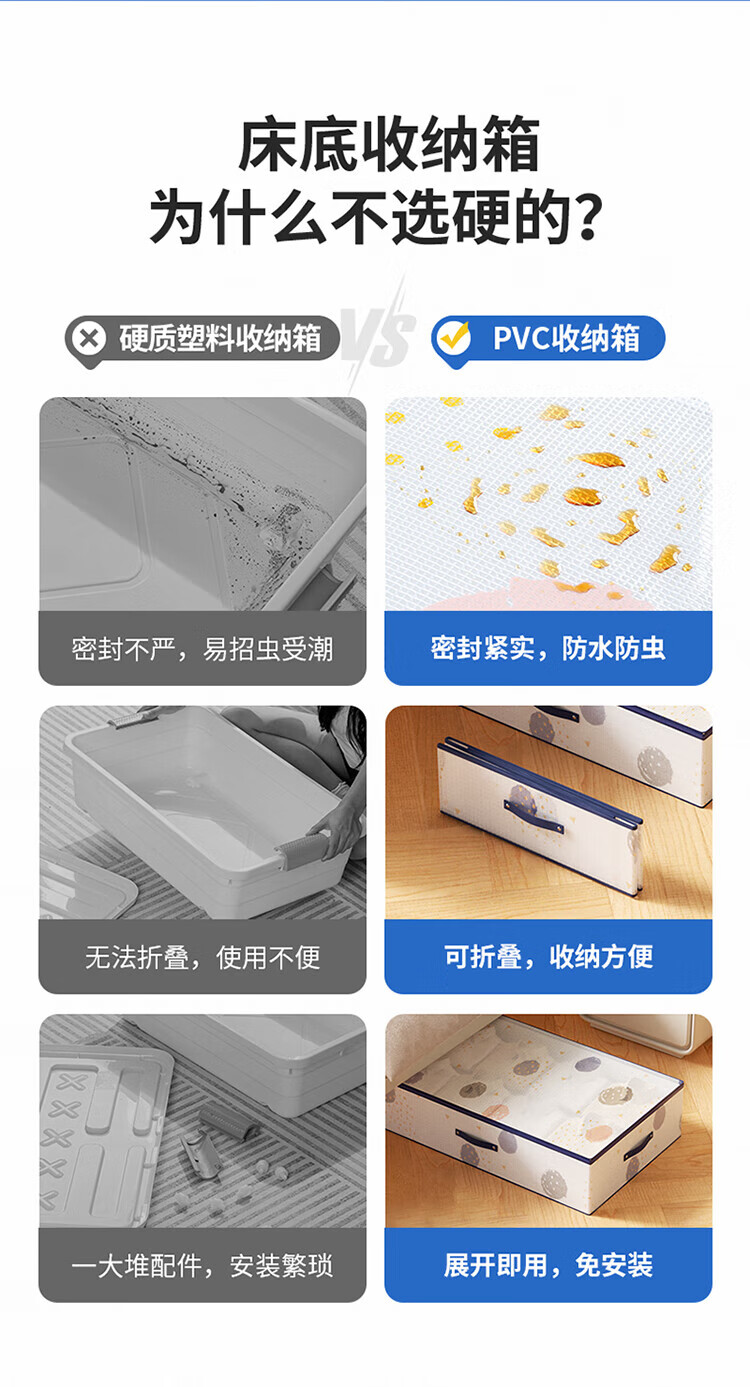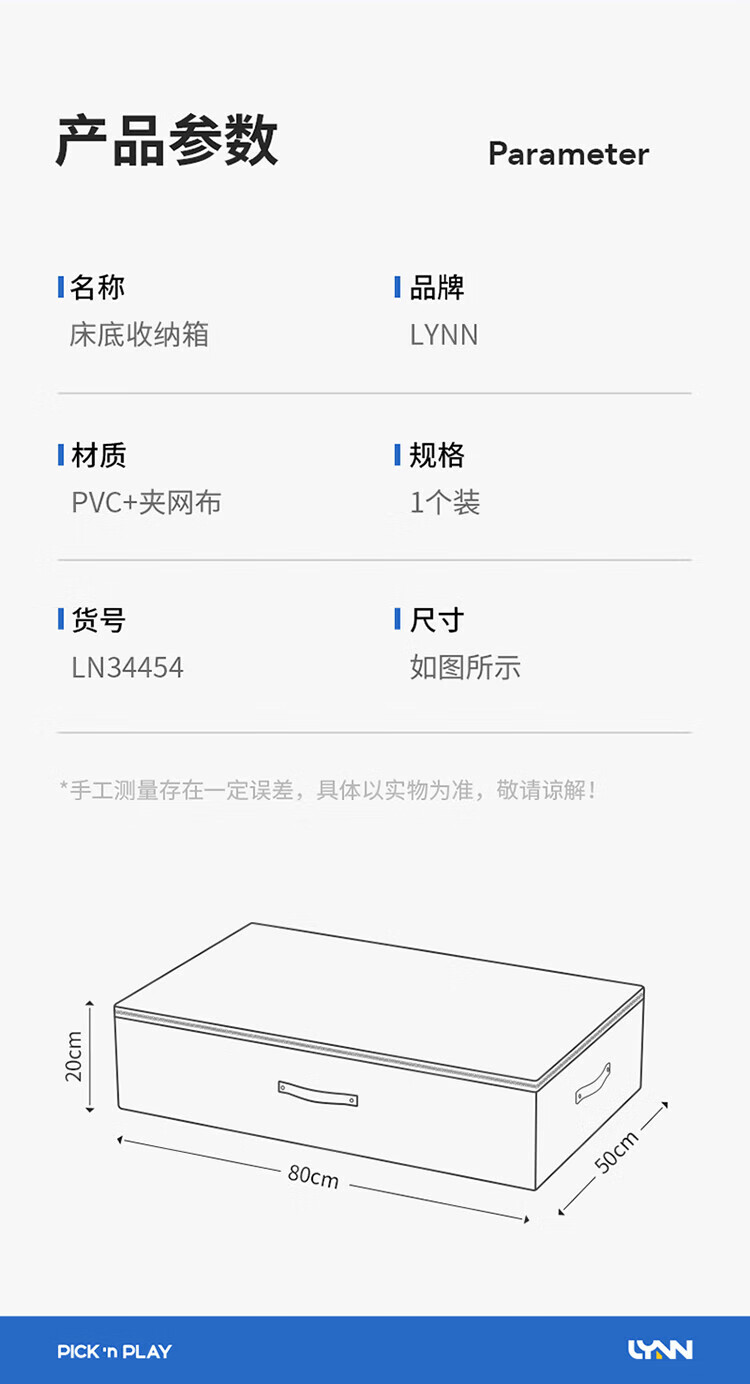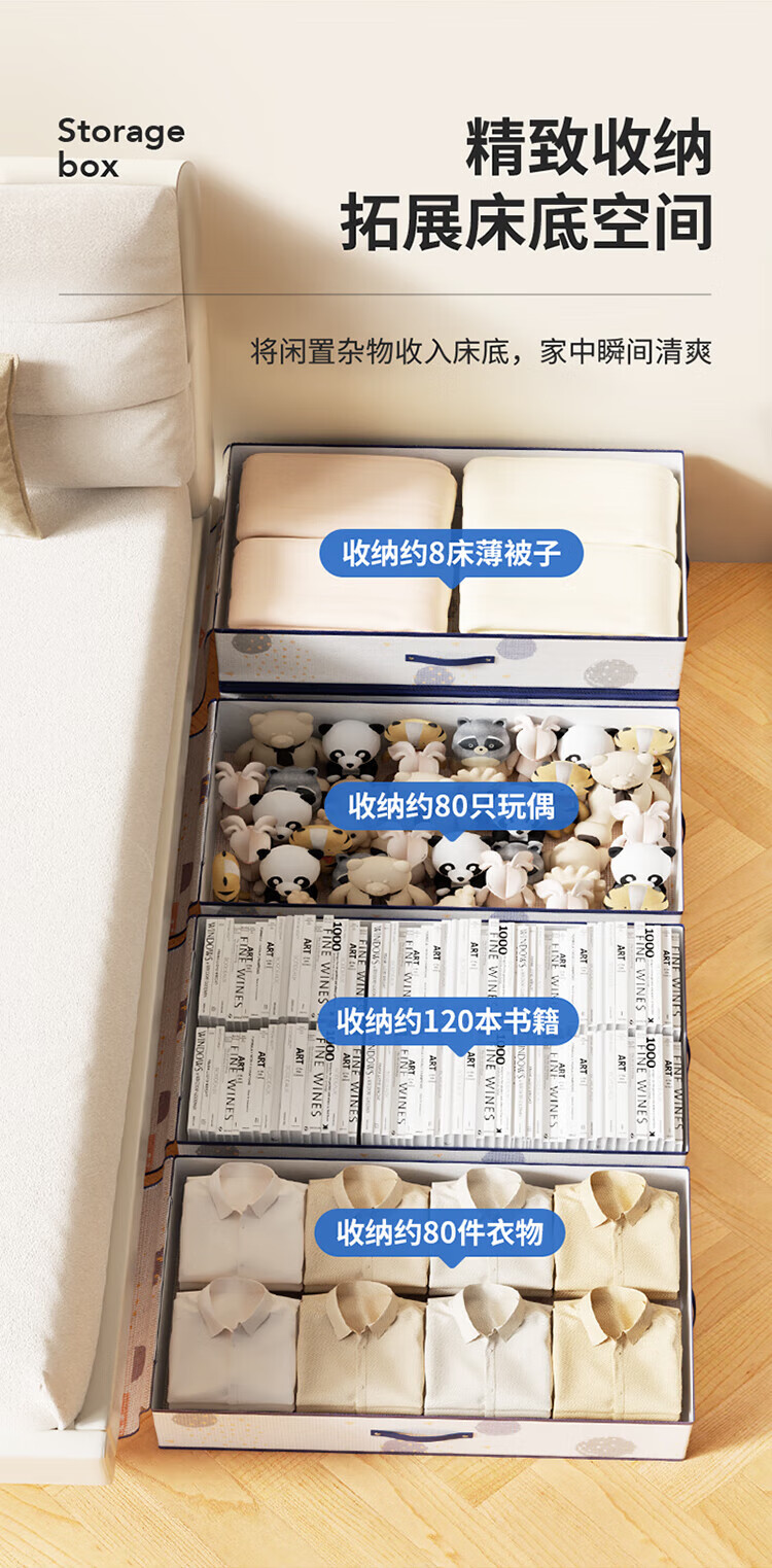 LYNN bed storage box, clothing, quilt, shoes, toy storage box, flat folding storage box, large size 80L, 1 pack