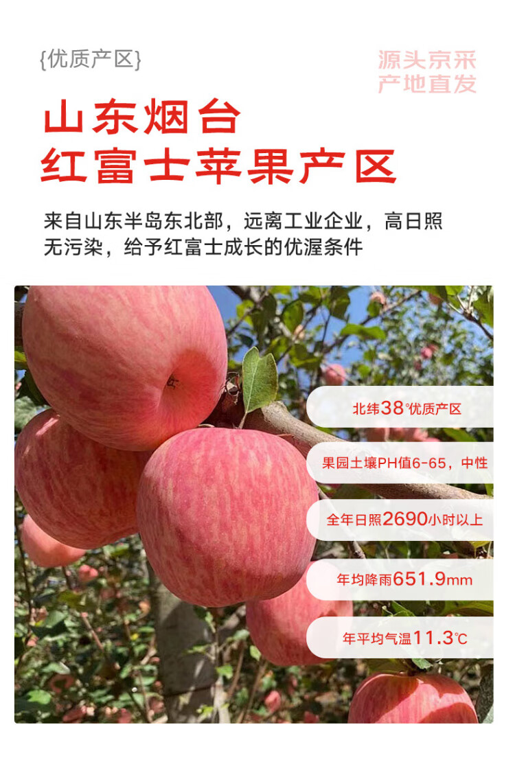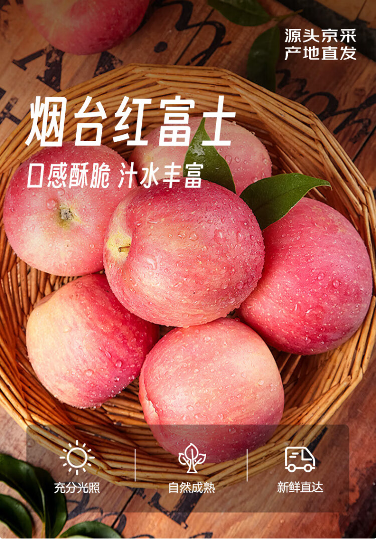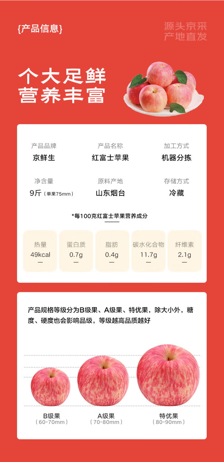 Jingxiansheng Shandong Yantai Red Fuji Apple, net weight 9 pounds, fruit diameter 75mm+, fresh fruit, straight from the source