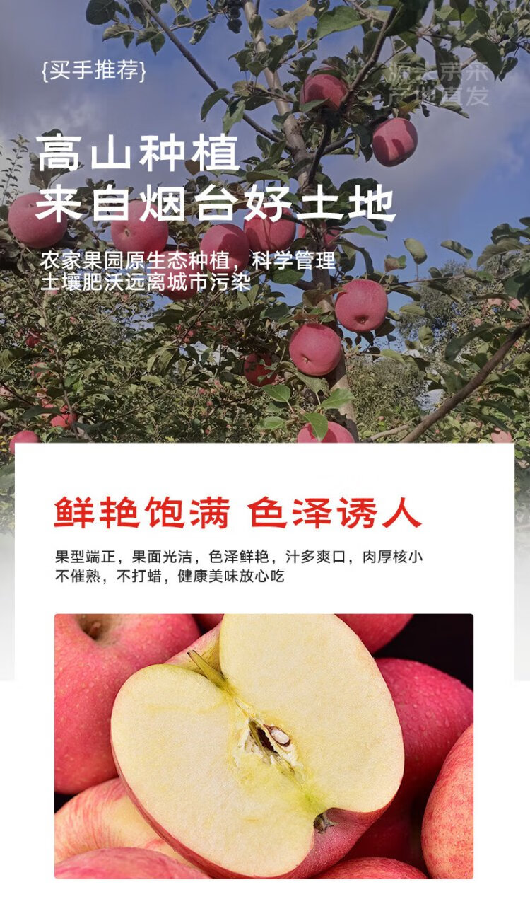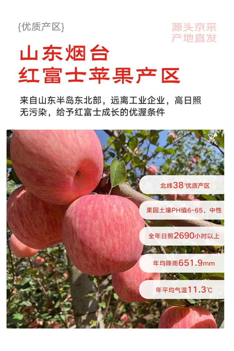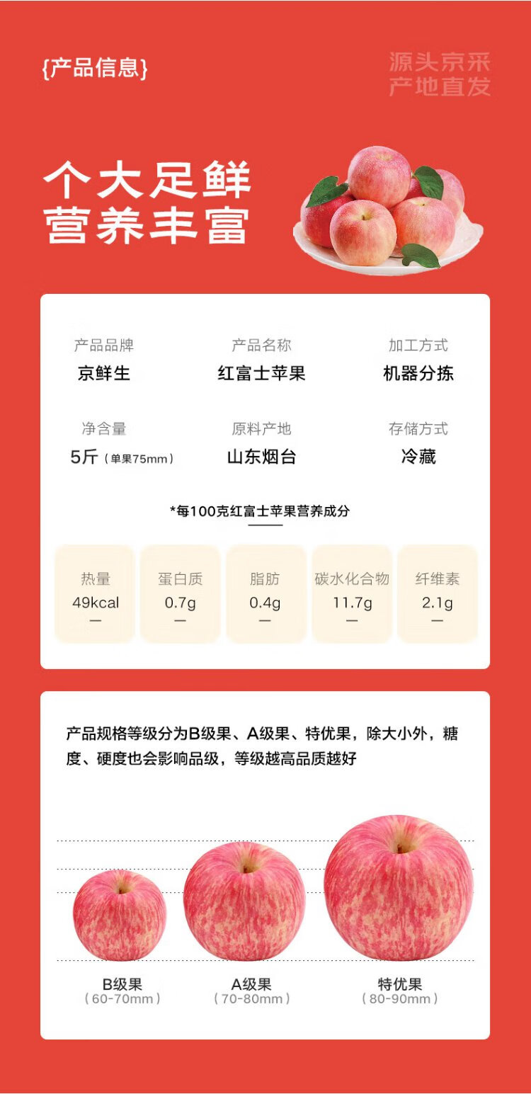 Jingxiansheng Shandong Yantai Red Fuji Apple, net weight 5 pounds, fruit diameter 75mm+, fresh fruit, straight from the source