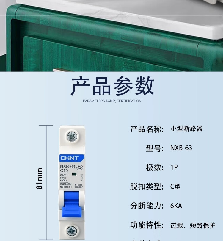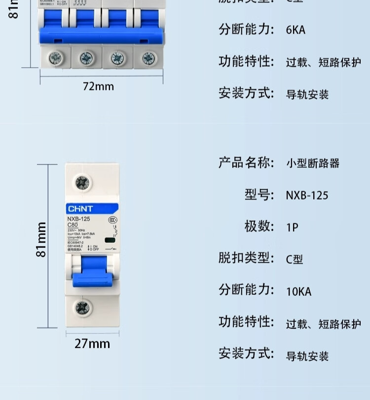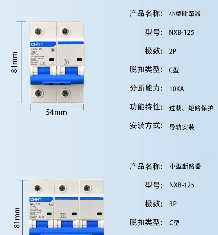 Chint (CHNT) small circuit breaker NXB-63-2P-C20 overload air switch DZ47 upgraded air switch 2P 20A