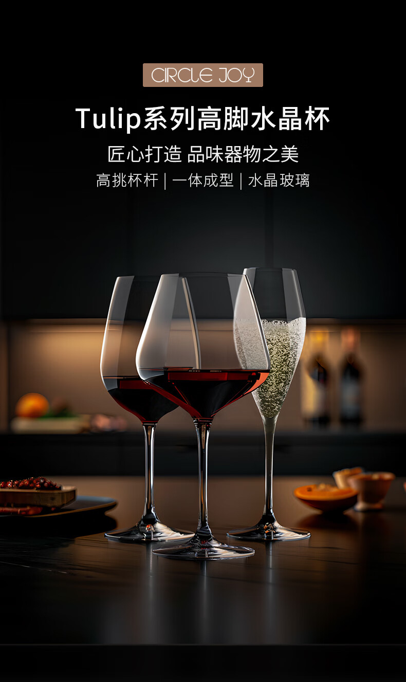 Circle Joy red wine glass set, crystal glass goblet, home wine glass, burgundy wine glass set, pair of 2 pieces