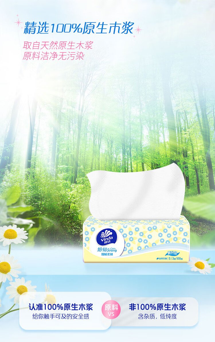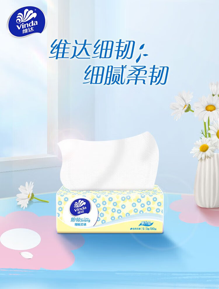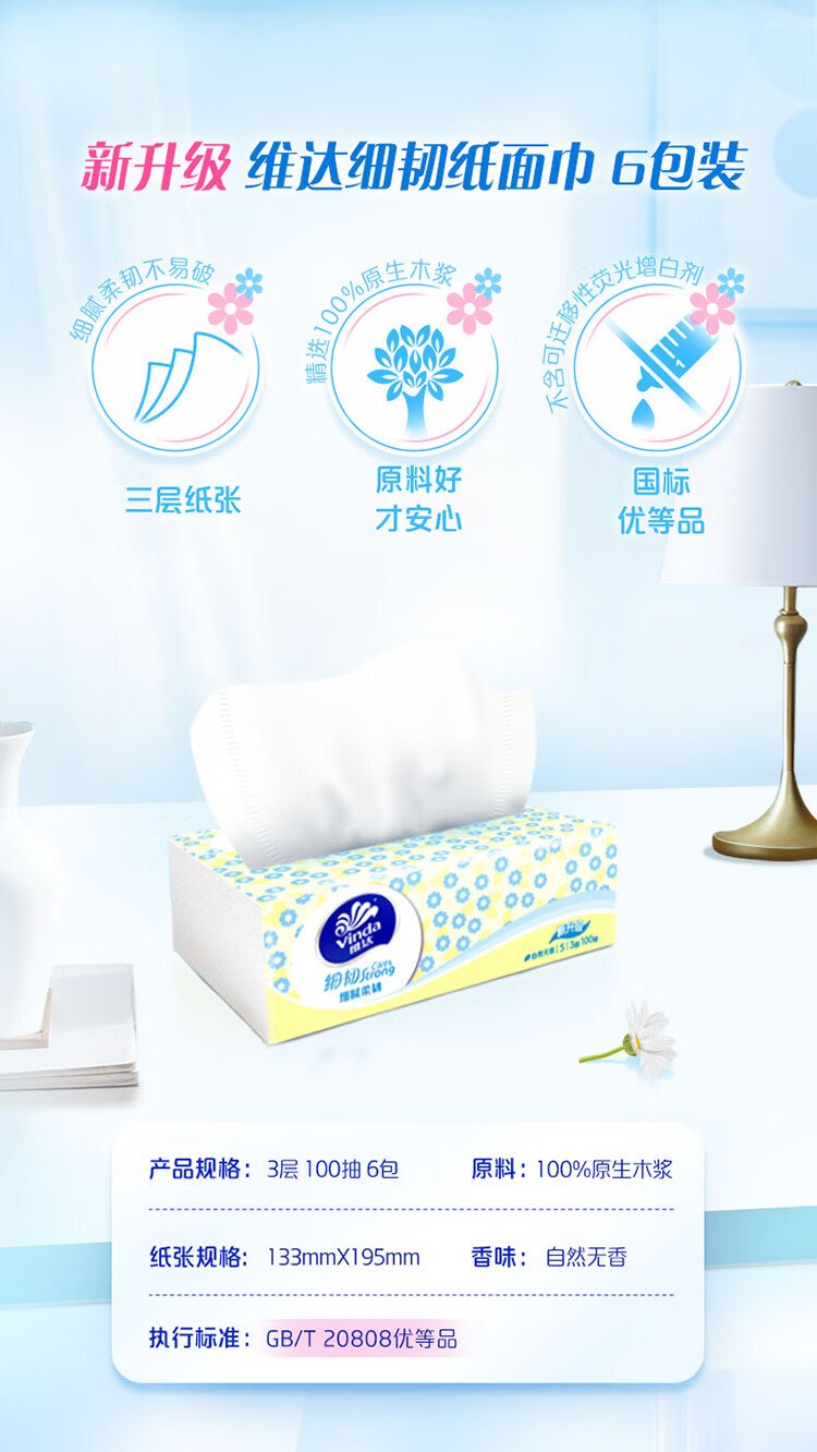 Vinda tissue paper, fine and tough 3-layer 100-tissue paper * 6 packs S size, fine and flexible tissue paper napkins