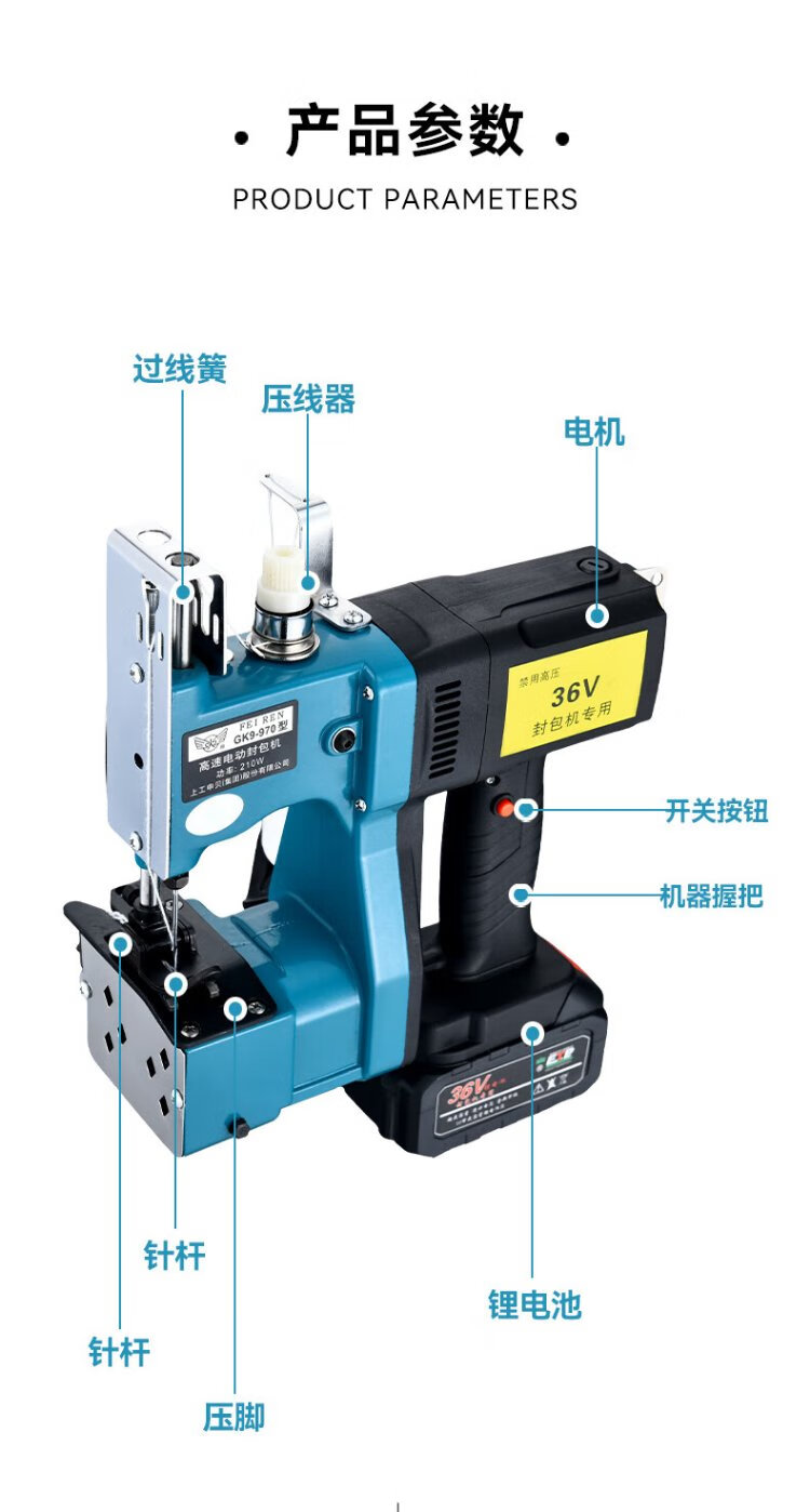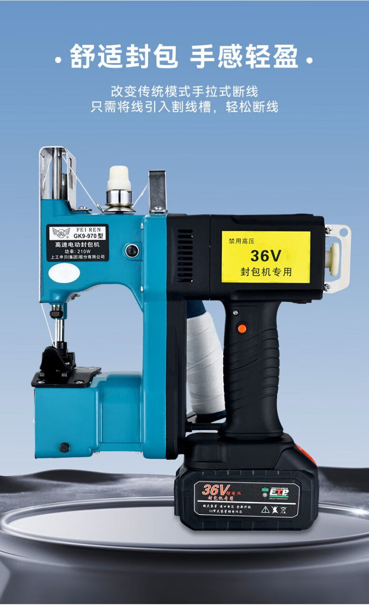 Feiren GK9-970 dual battery portable lithium battery bag sealing machine rechargeable rechargeable bag sealing machine 36V bag sewing machine outdoor portable sealing machine sewing machine bag sewing machine durable