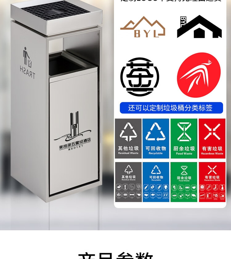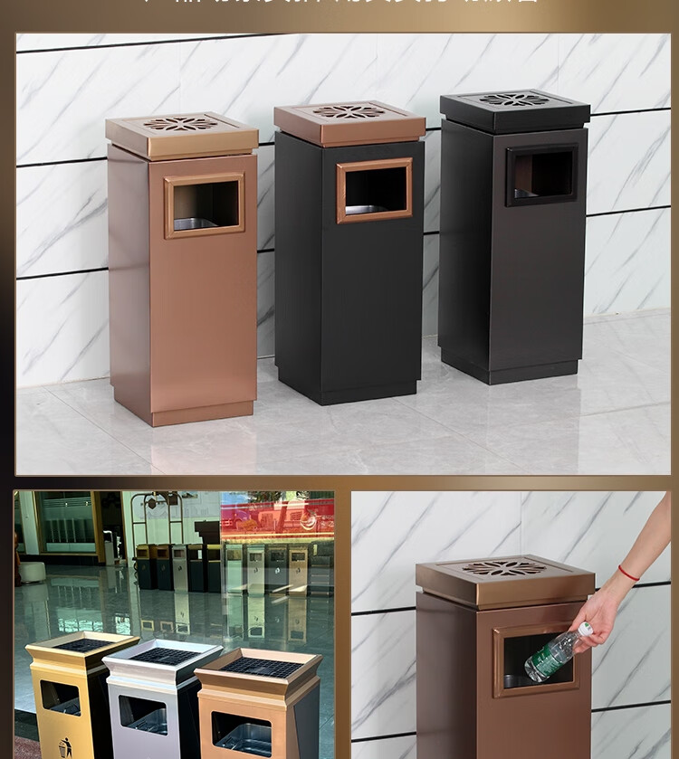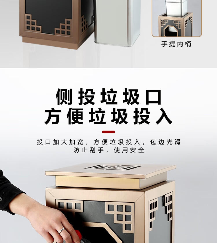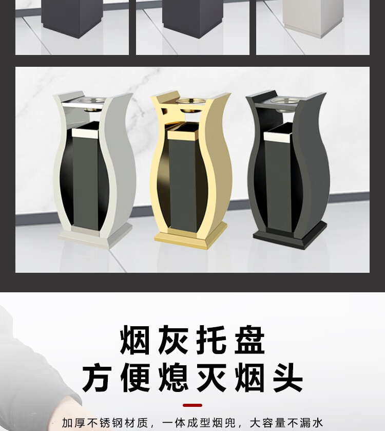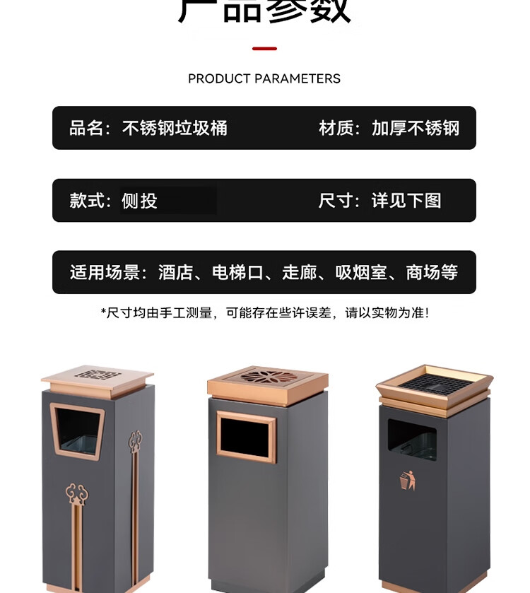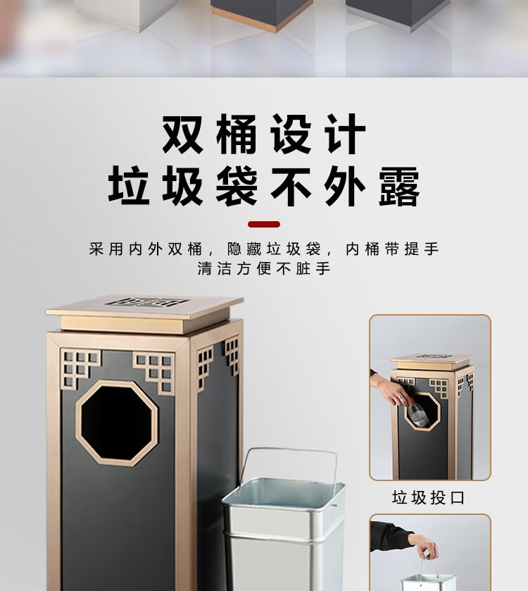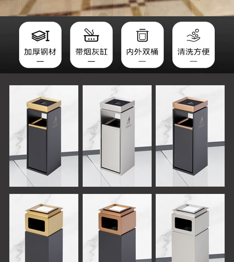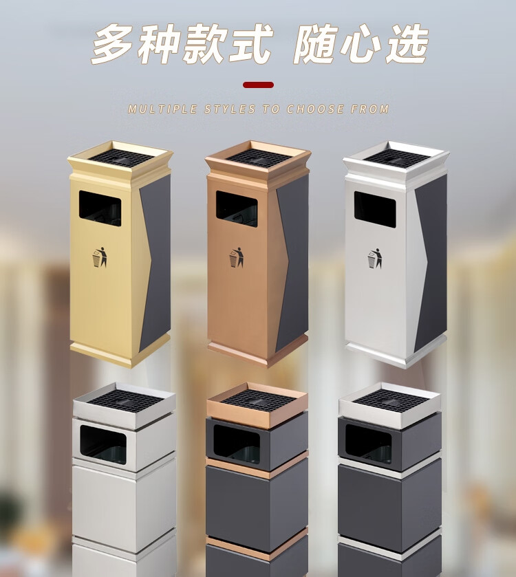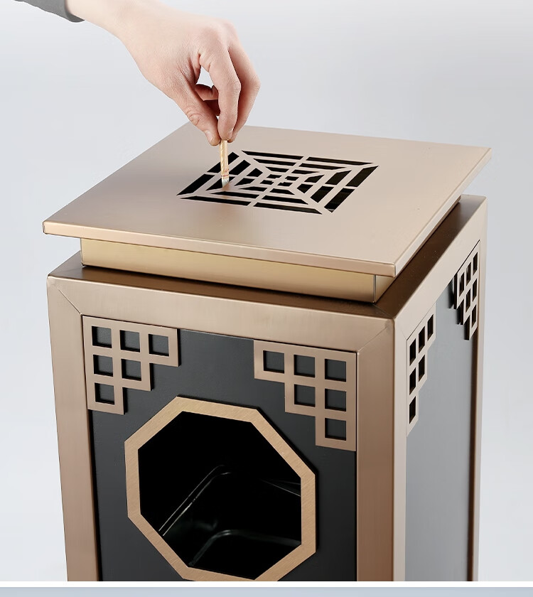 Maixiang sanitation ash bucket square bucket 201 stainless steel side throw custom trash can hotel smoke extinguisher bucket with ashtray shopping mall hotel elevator entrance corridor vertical ash column