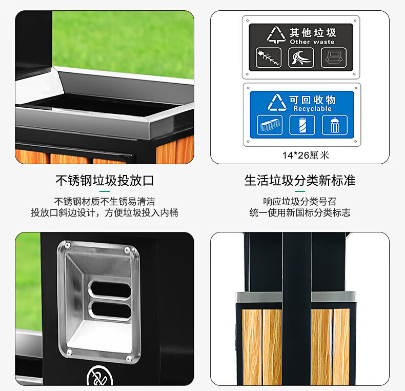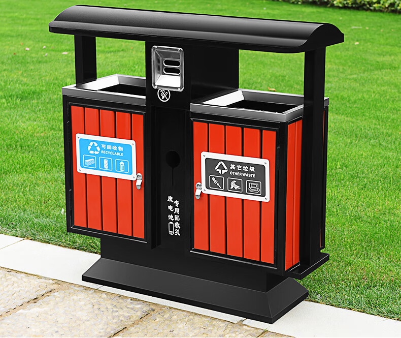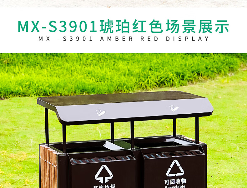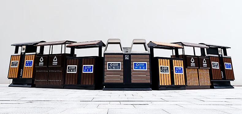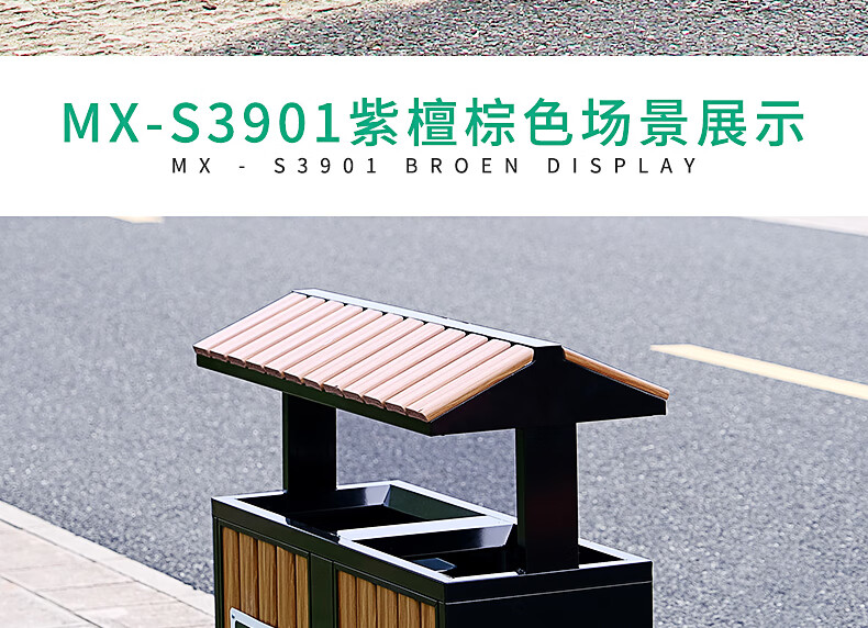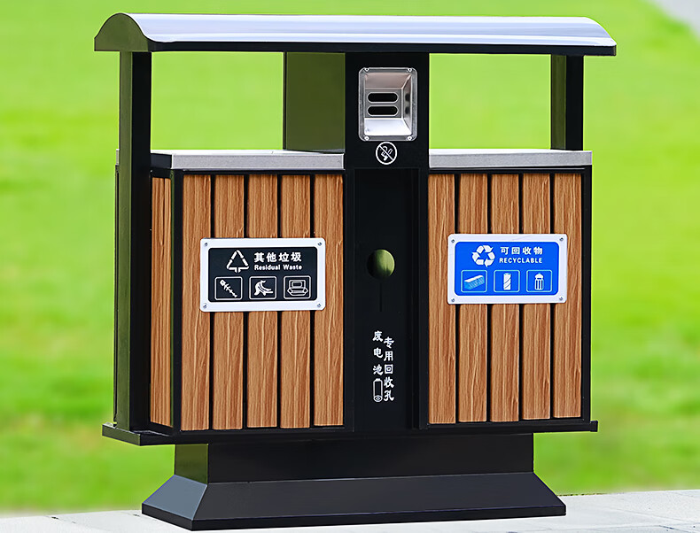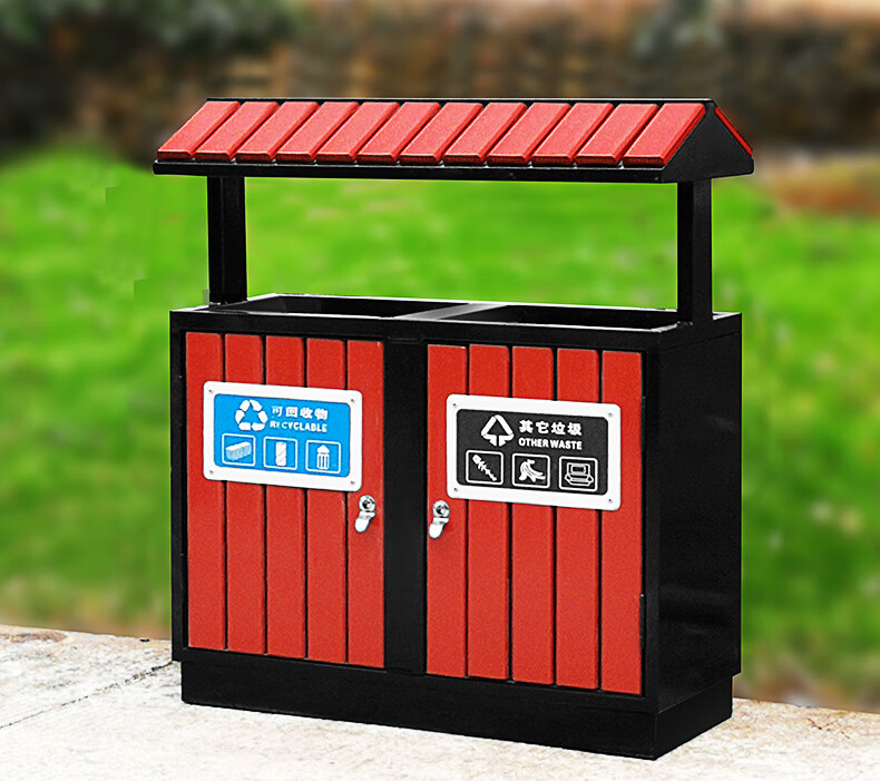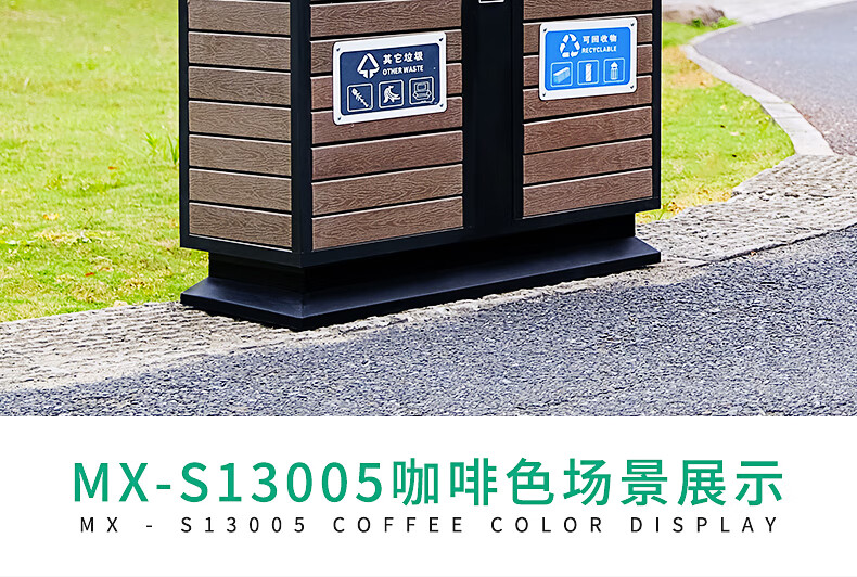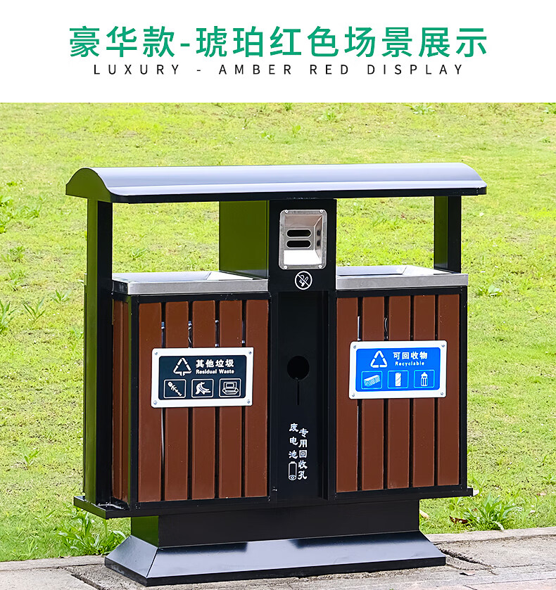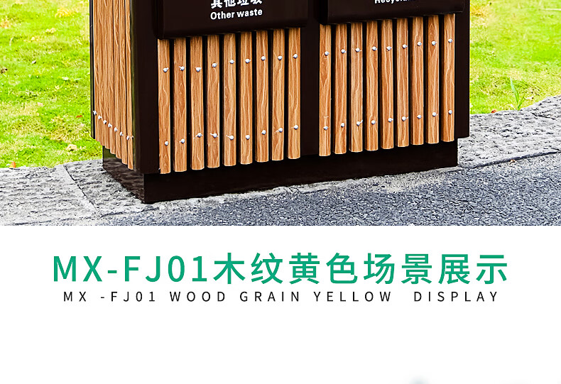 Maixiang sanitation outdoor trash can, two categories, new national standard customized sanitation peel box dry and wet separation large commercial steel wood trash bin outdoor park scenic spot property shopping mall