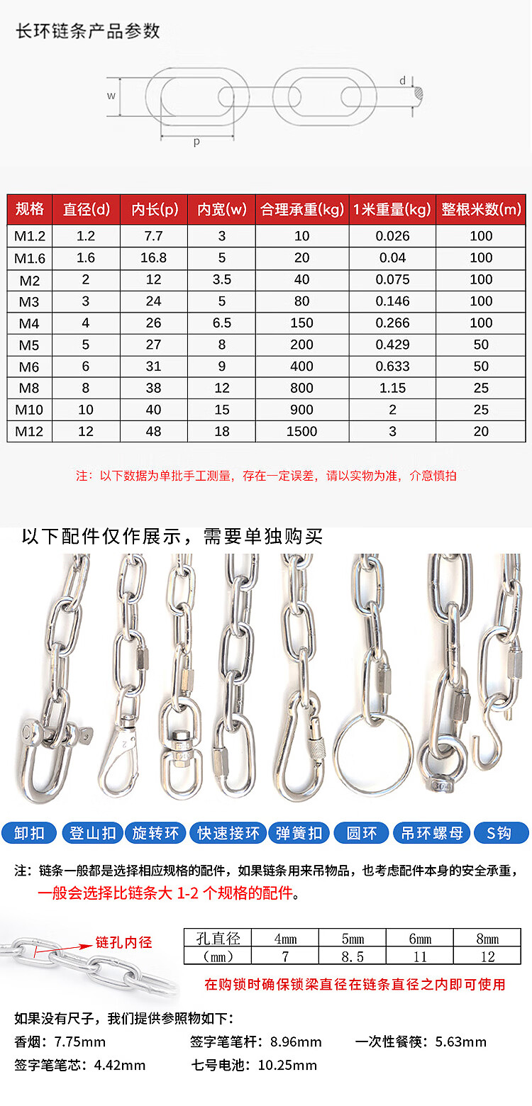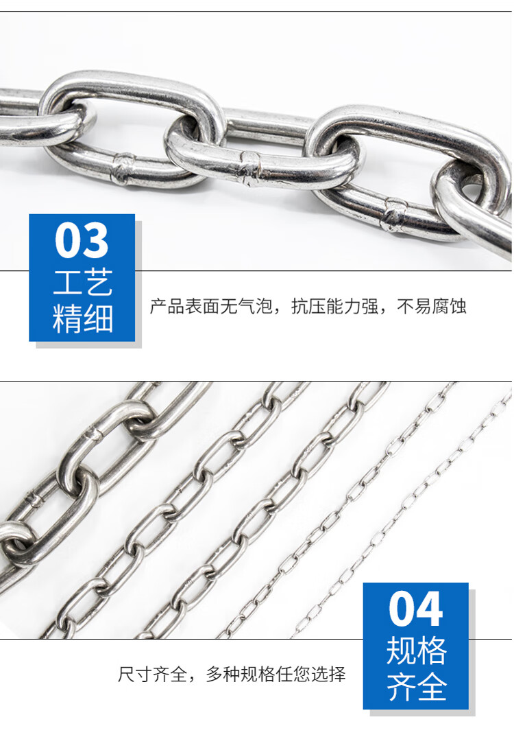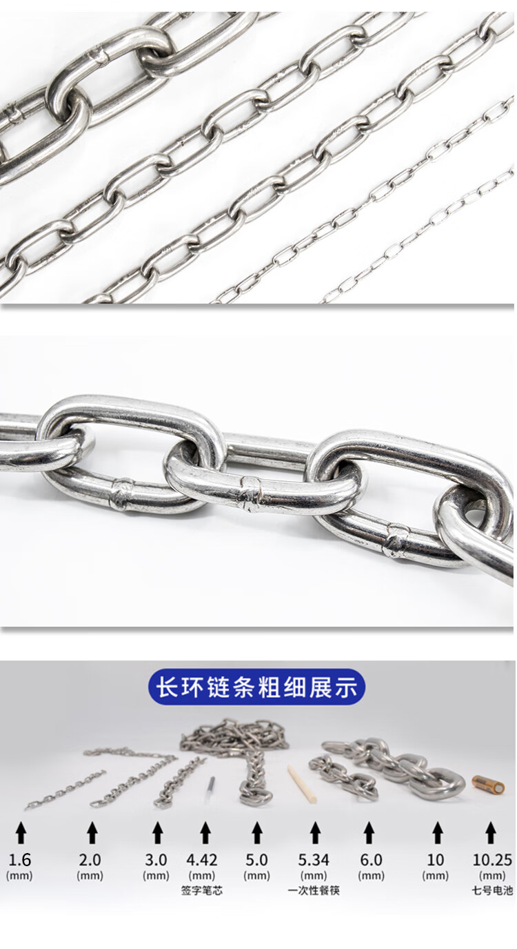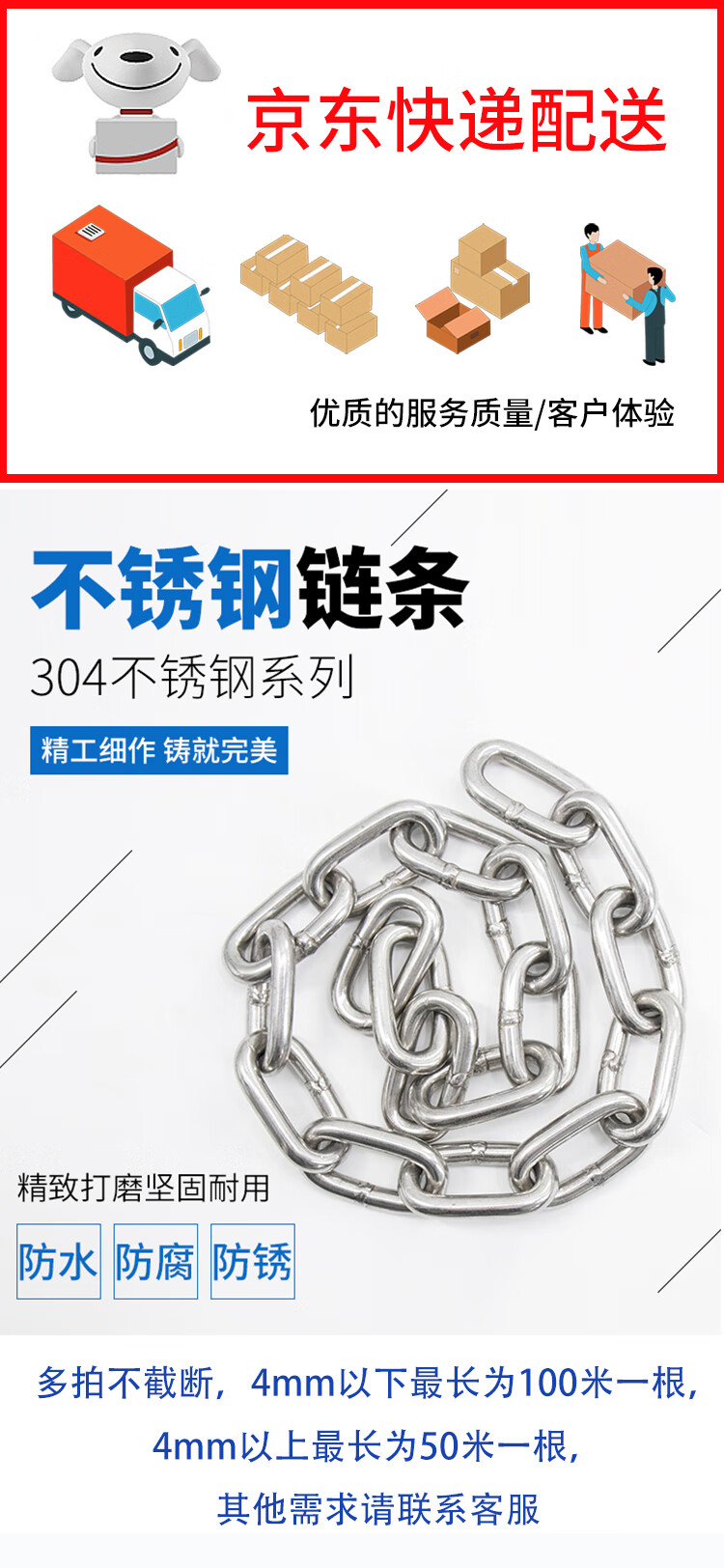 Hesdig 304 stainless steel chain iron chain lifting chain guardrail chain chandelier thick iron chain swing chain Jingcang flash delivery 4mm thick 2 meters long JG-1907