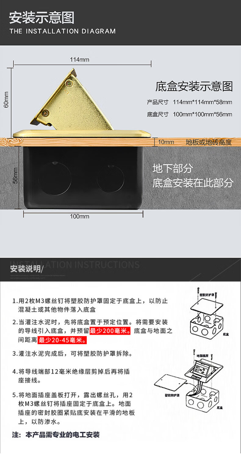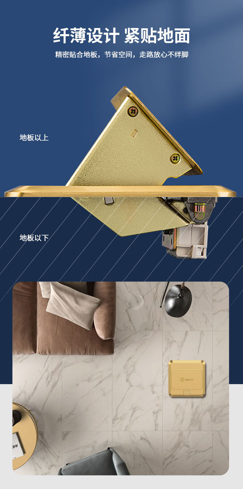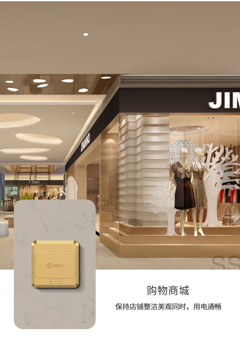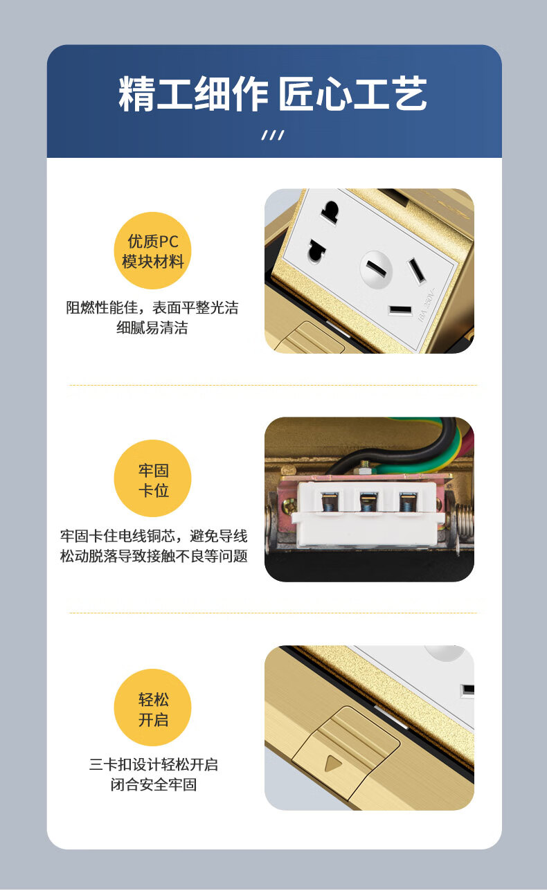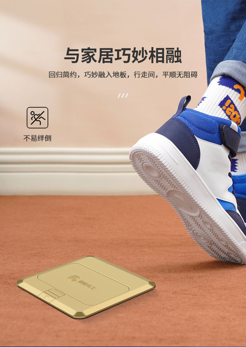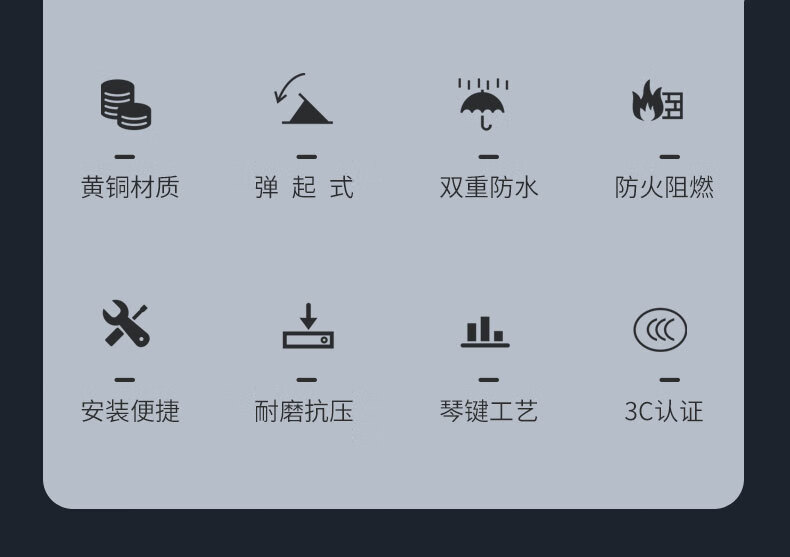 International electrical site socket copper ground plug anti-splash water damping slow pop-up ultra-thin ground socket strong and weak current combination copper ground plug-five holes (10A)