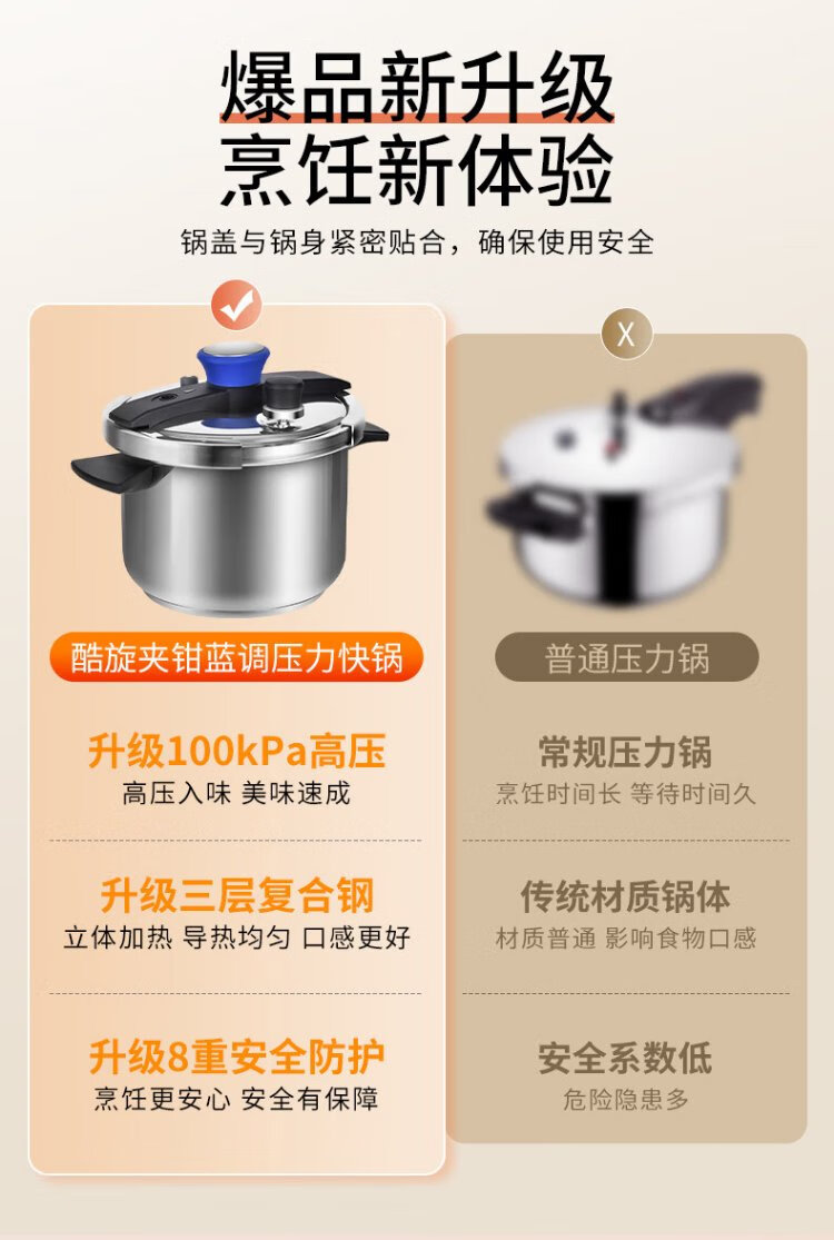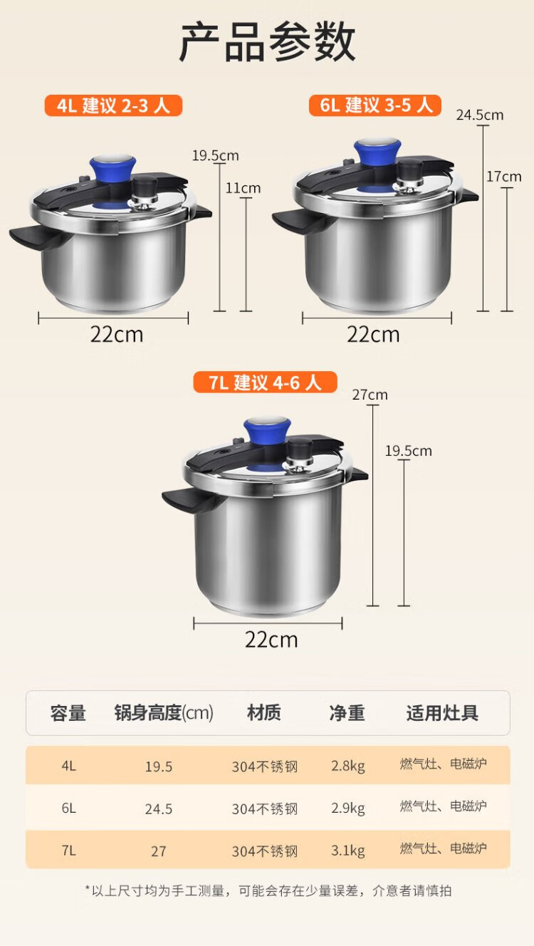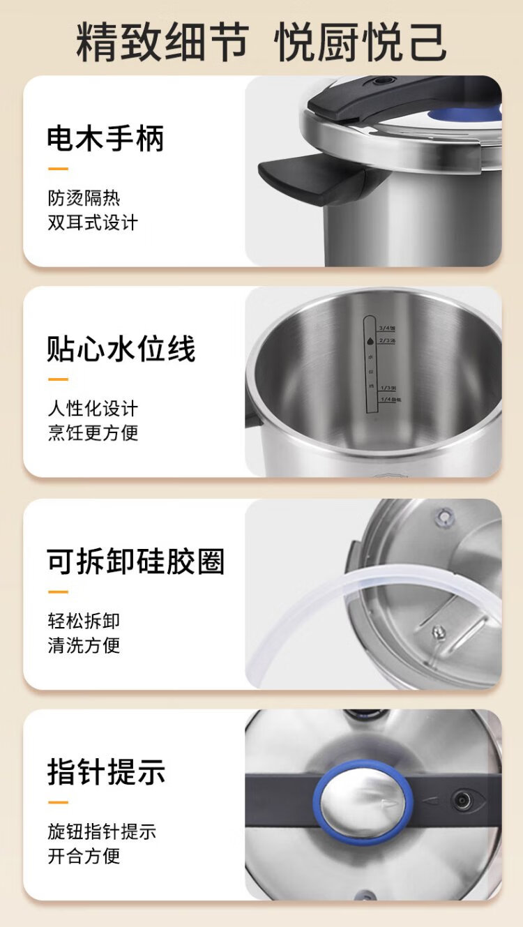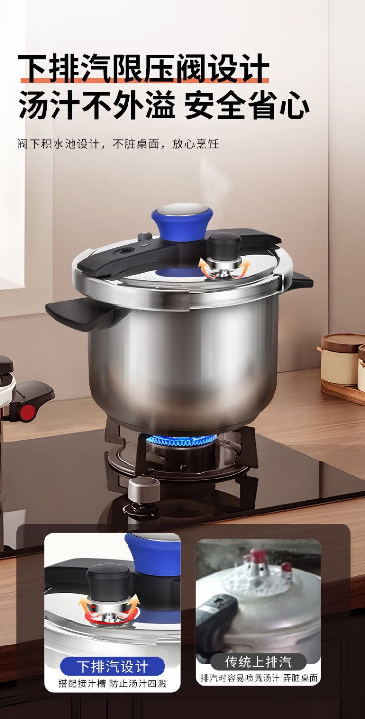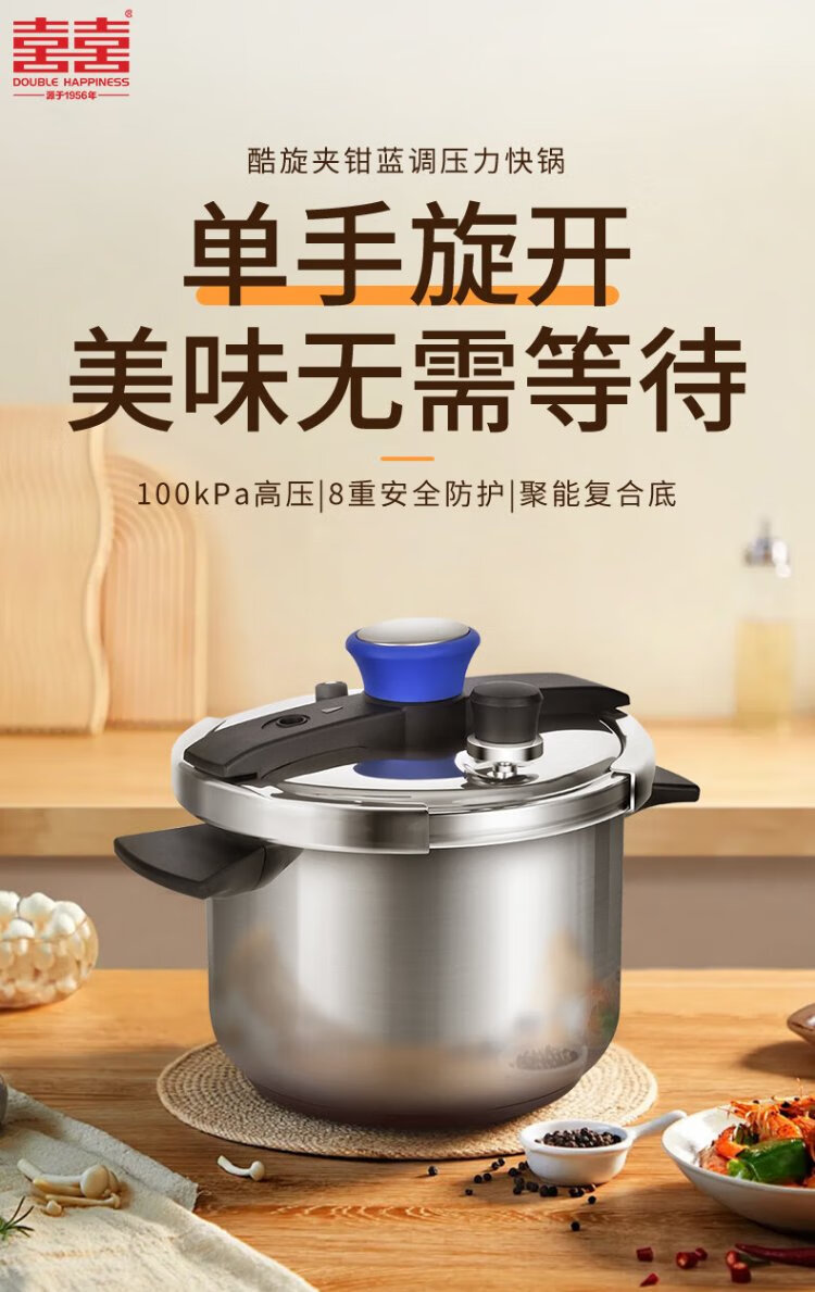 Shuangxi pressure cooker 304 stainless steel gas induction cooker universal household explosion-proof pressure cooker one-hand opening and closing 22CM/7L