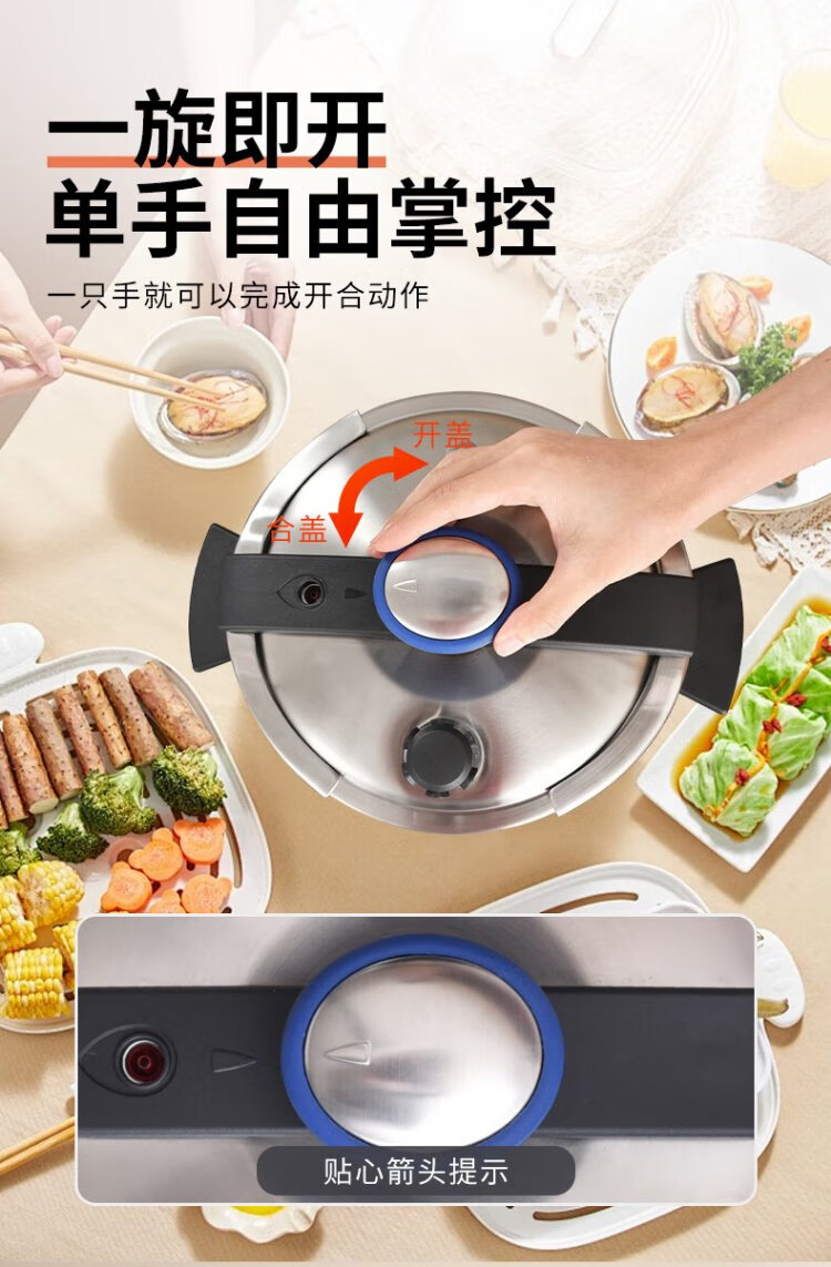 Shuangxi pressure cooker 304 stainless steel gas induction cooker universal explosion-proof household pressure cooker one-hand opening and closing 22CM/6L