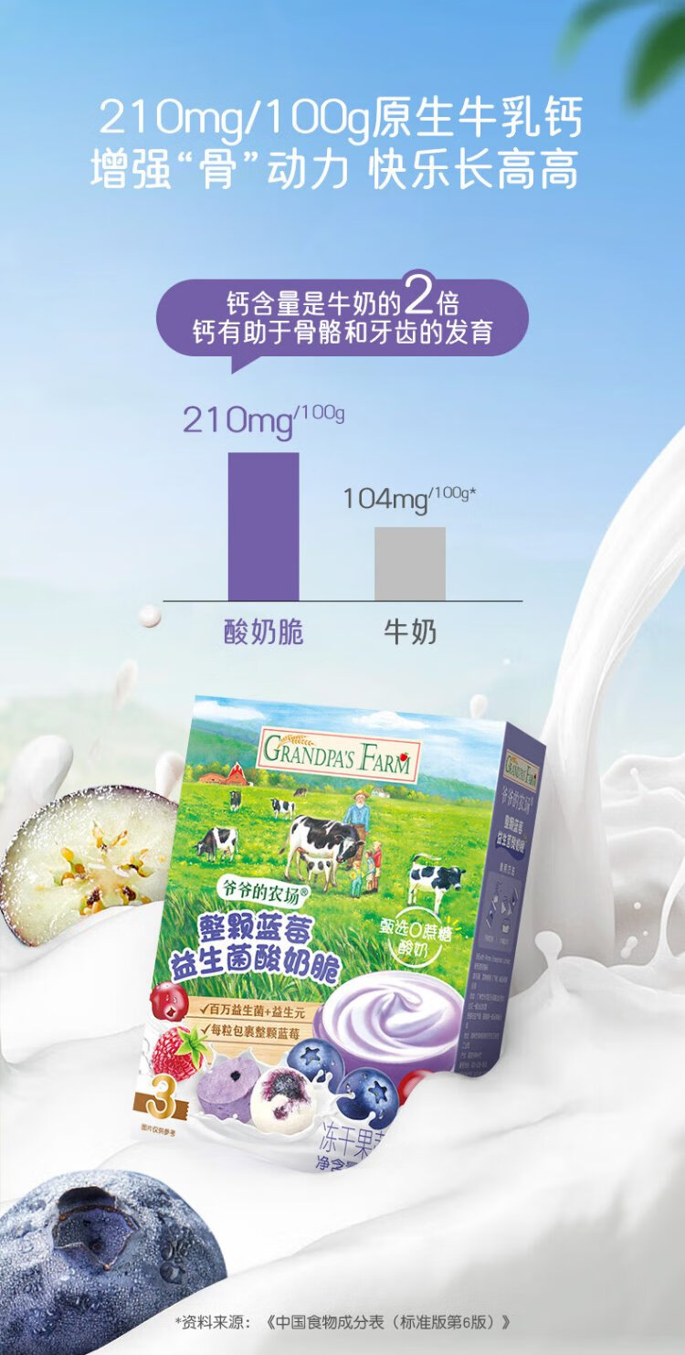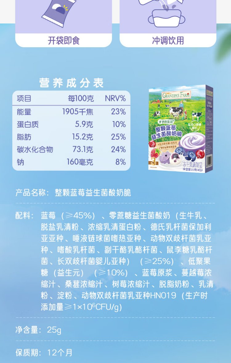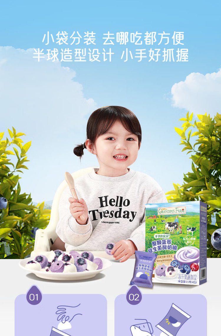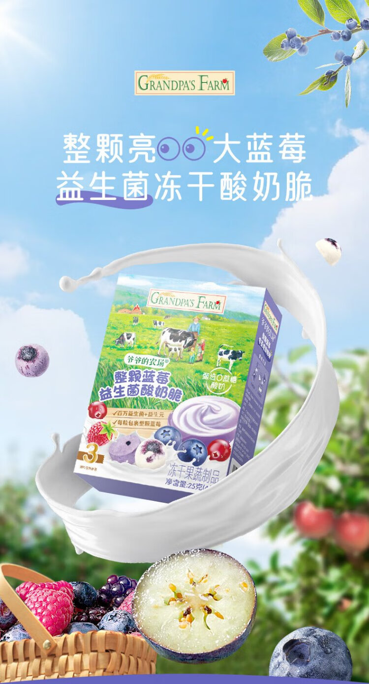 Grandpa's Farm Whole Blueberry Probiotic Yogurt Crispy Baby Snacks 0 Added Sucrose Yogurt Added Probiotics 25g