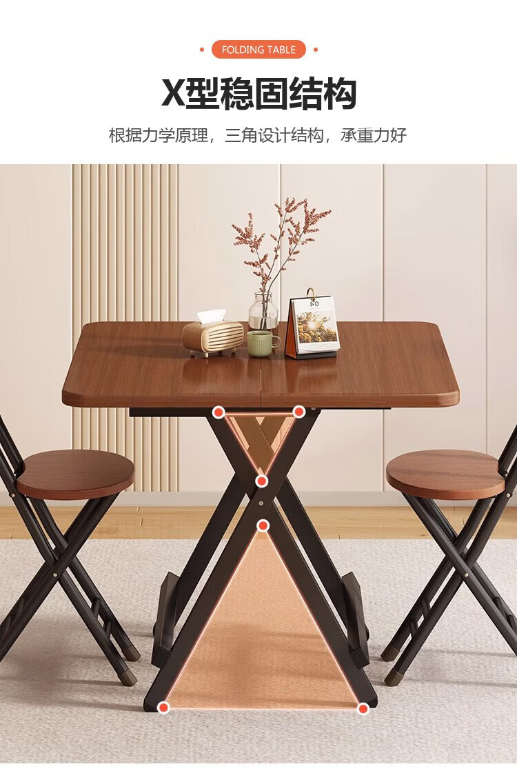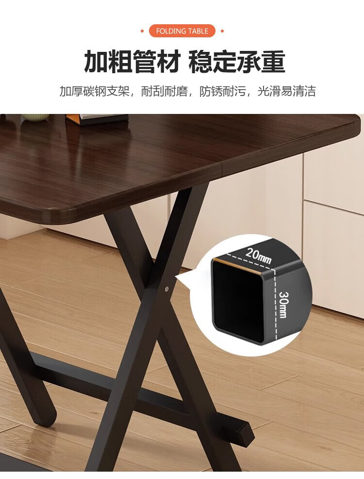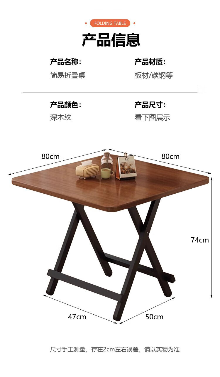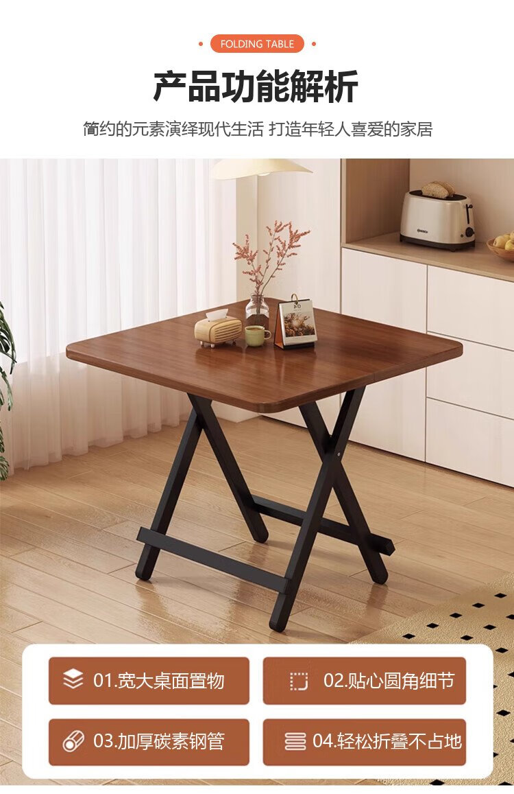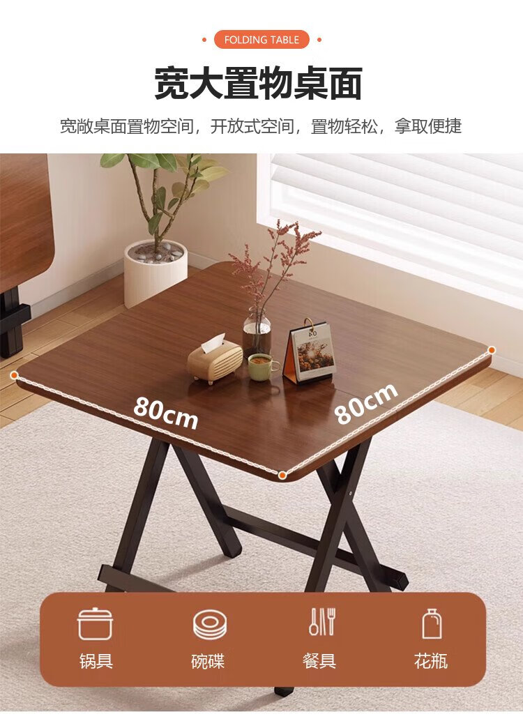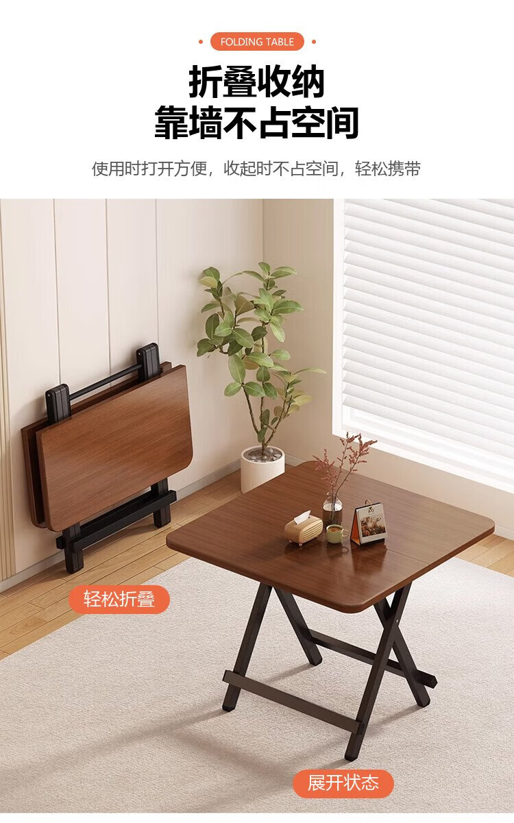 Huakaizhixing folding table table folding dining table simple and convenient small apartment dining table square table CJ018 dark wood grain 80cm