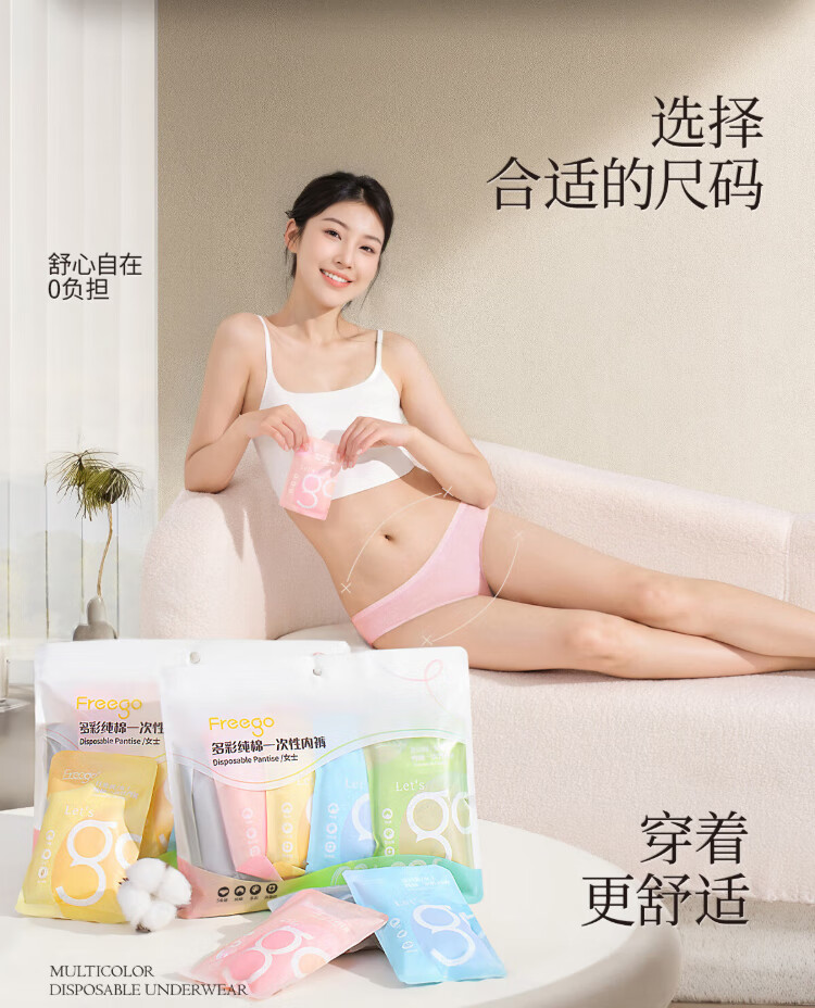 Freego disposable underwear women's pure cotton independent pack 10 color daily disposable travel business trip pregnant women and maternity sterilization XL size