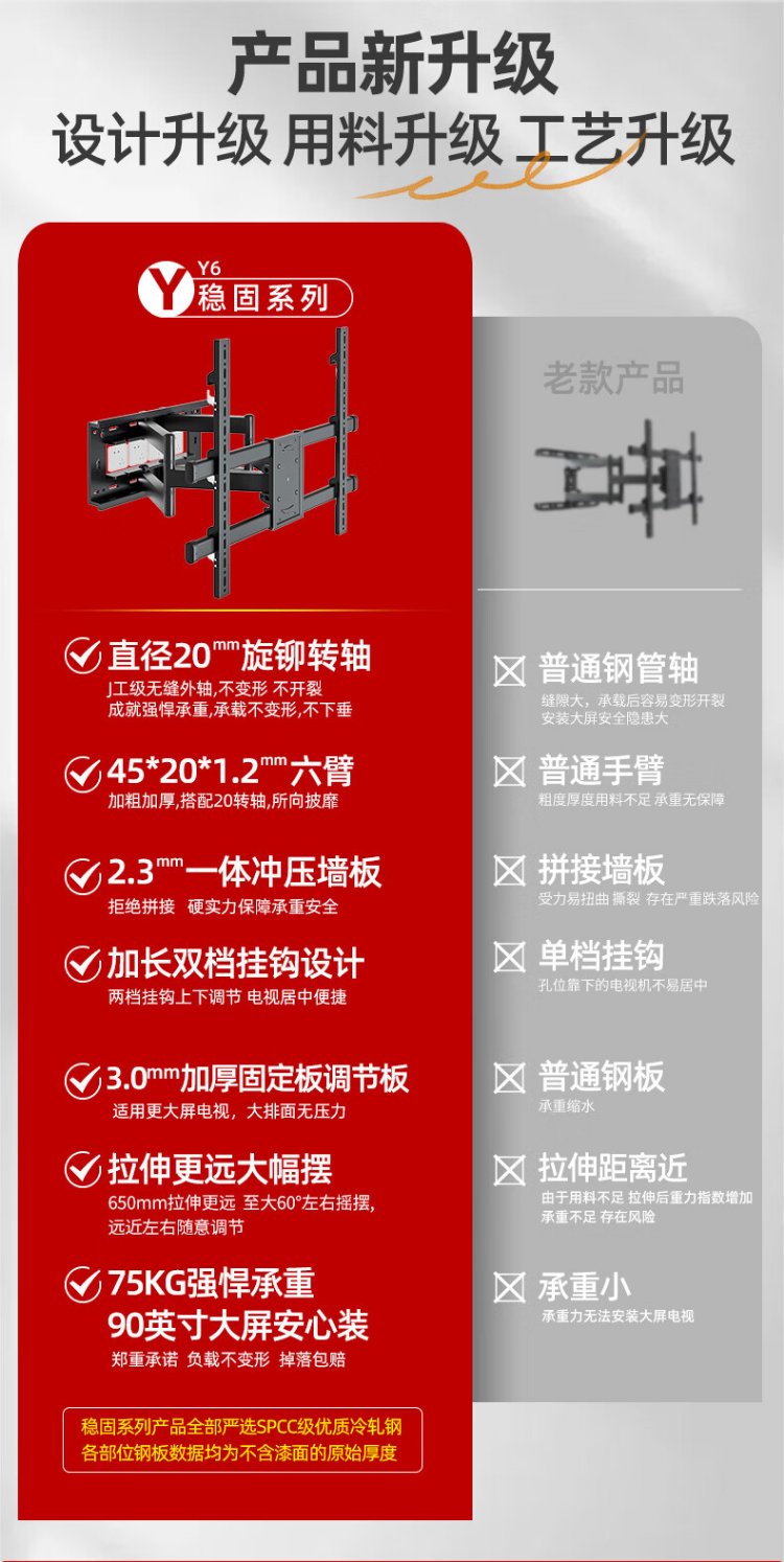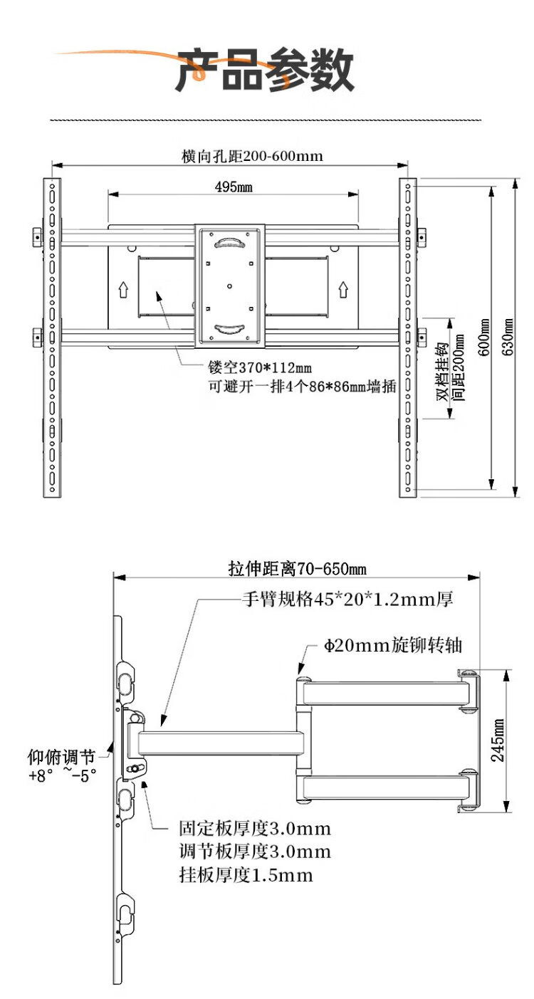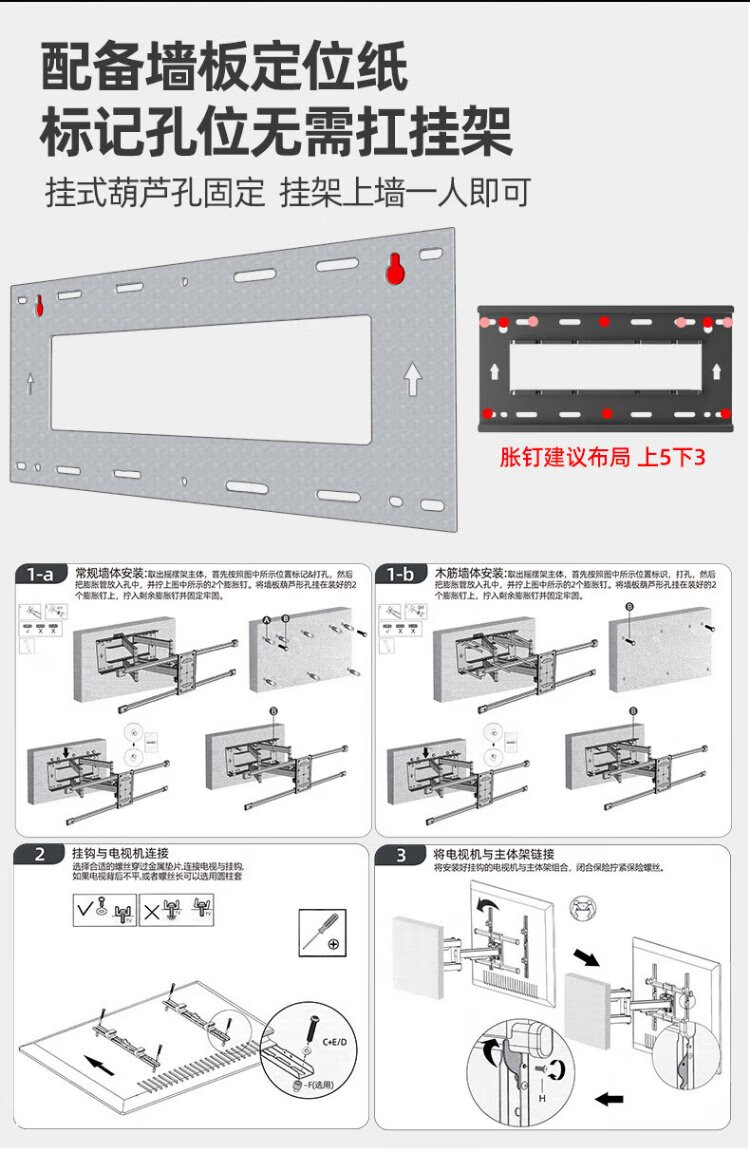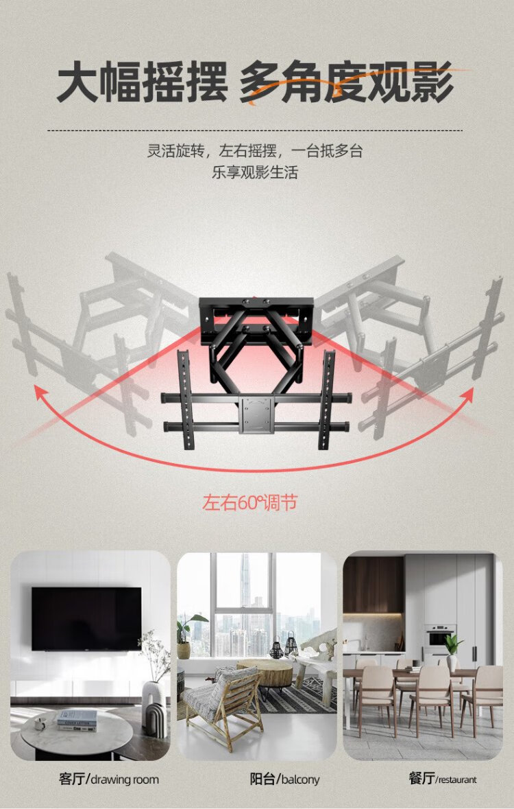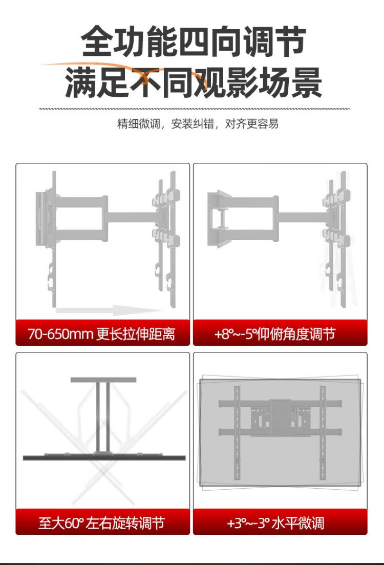 Jianleji TV hanger retractable rotating up and down adjustable wall bracket avoids the socket subwoofer suitable for TCL Thunderbird Peng 7 Crane 6 Huawei Hisense 65/75/85 inches