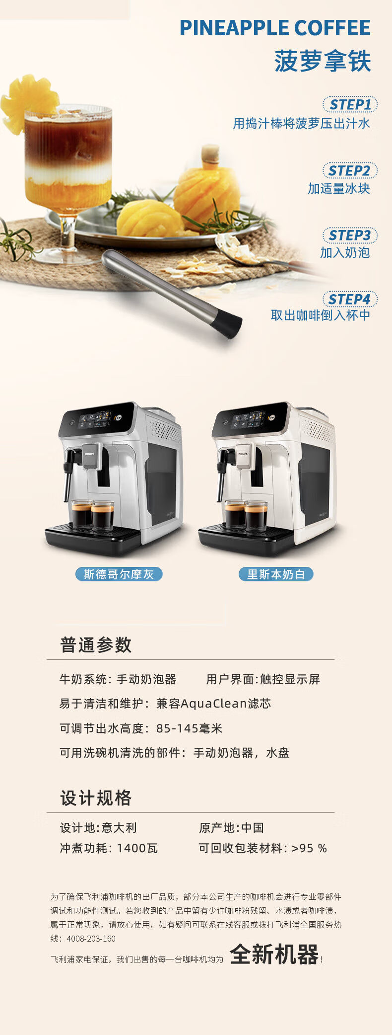 Philips (PHILIPS) Black Pearl Coffee Machine/Italian American Fully Automatic Home Office Coffee Machine with Grinding Integration EP1221/69 Gift Choice