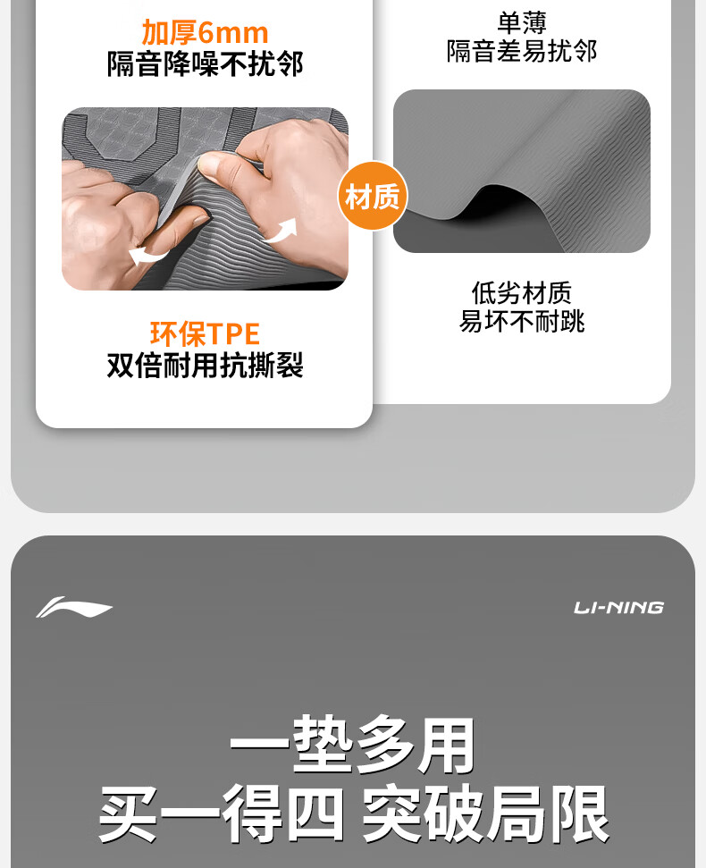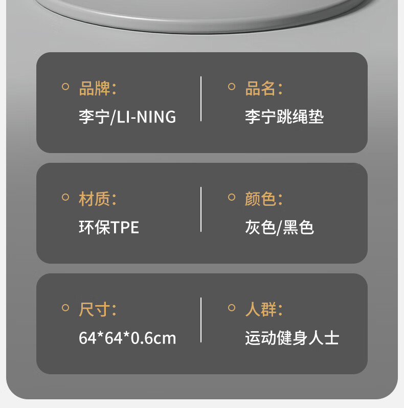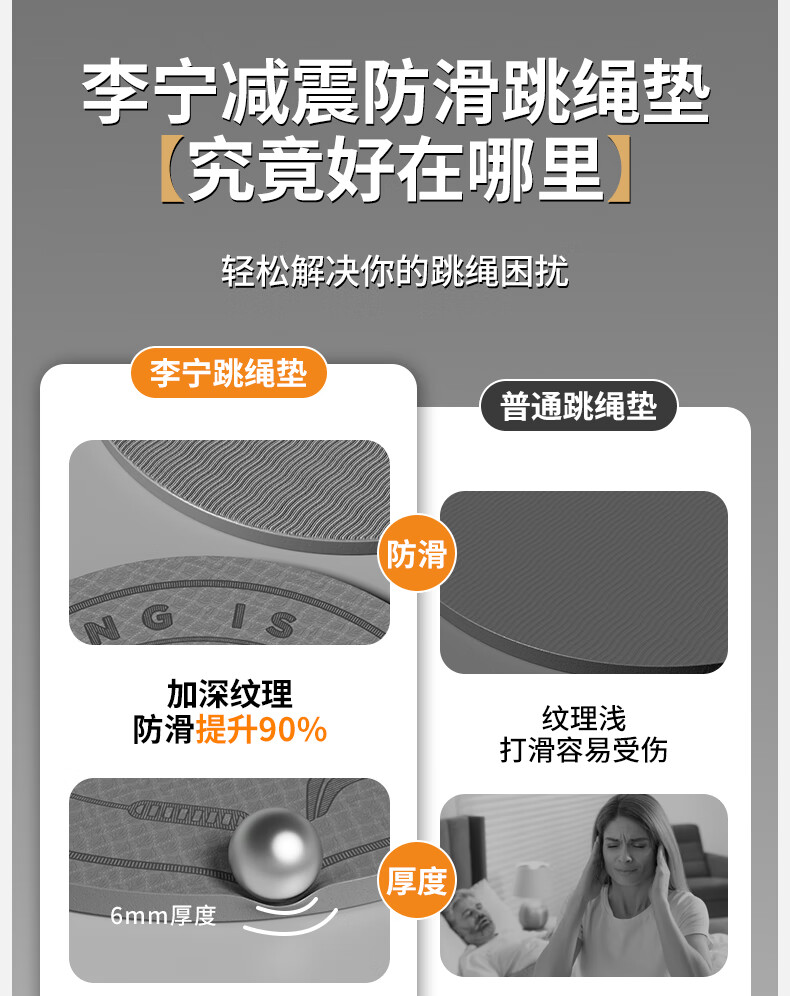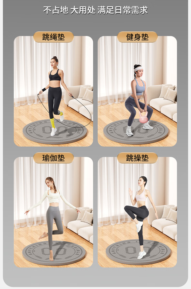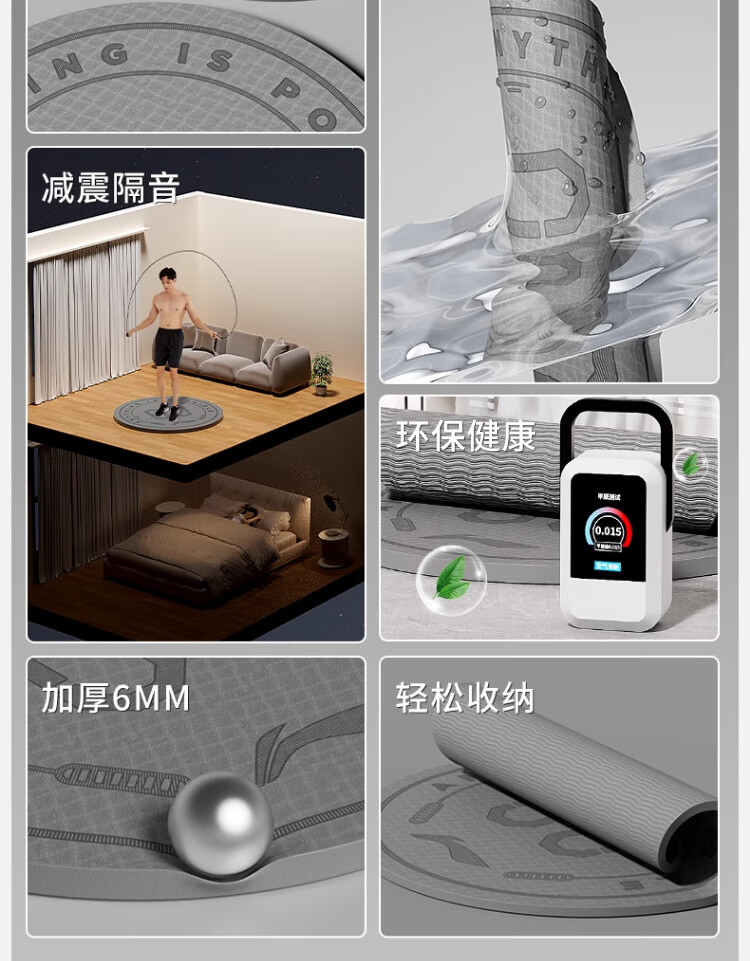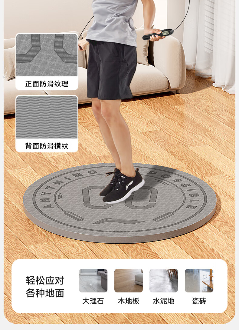 Li Ning (LI-NING) skipping rope shock-absorbing mat round professional home non-slip indoor yoga special soundproof floor mat 6mm