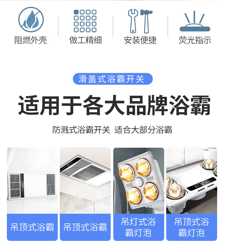Tianshili bathroom heater switch integrated ceiling E series five-turn bathroom exhaust fan lighting integrated five-in-one bathroom heater switch white five-turn