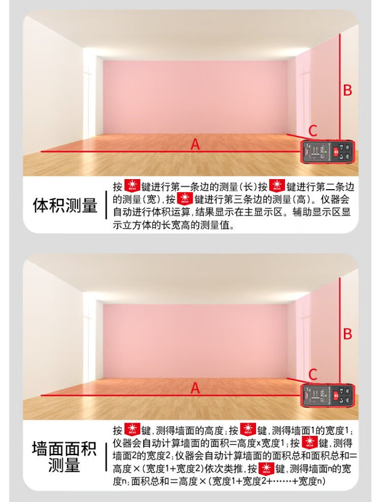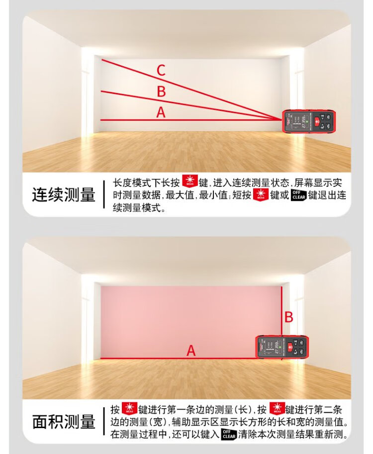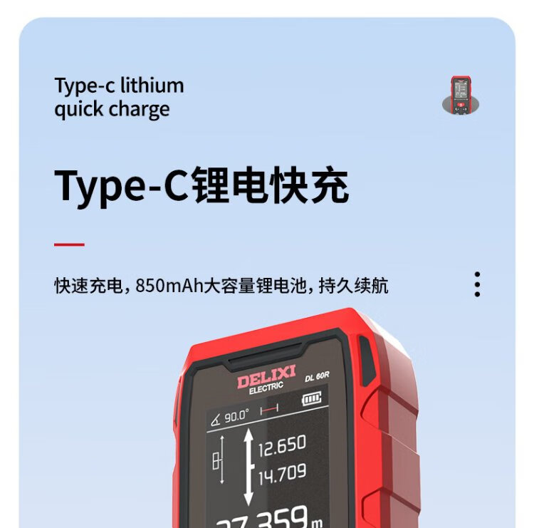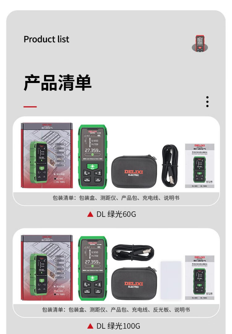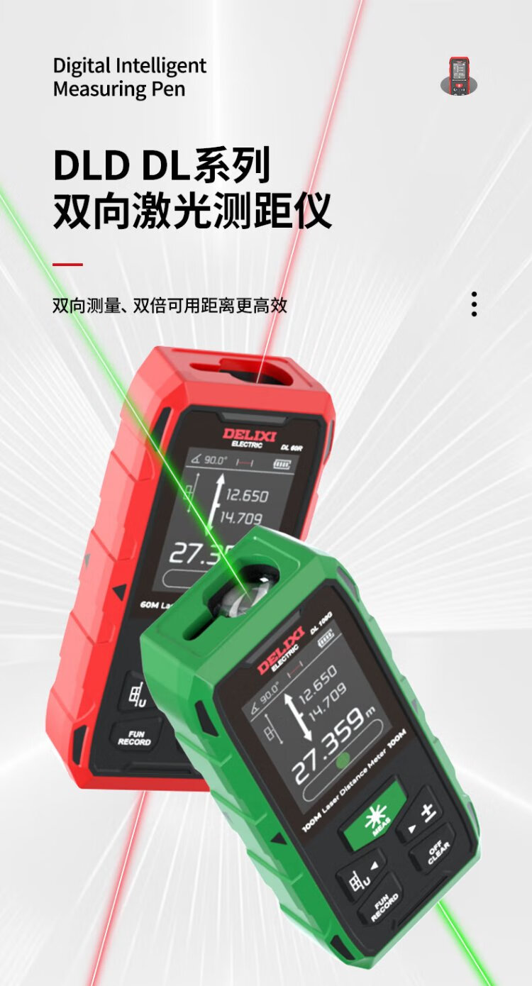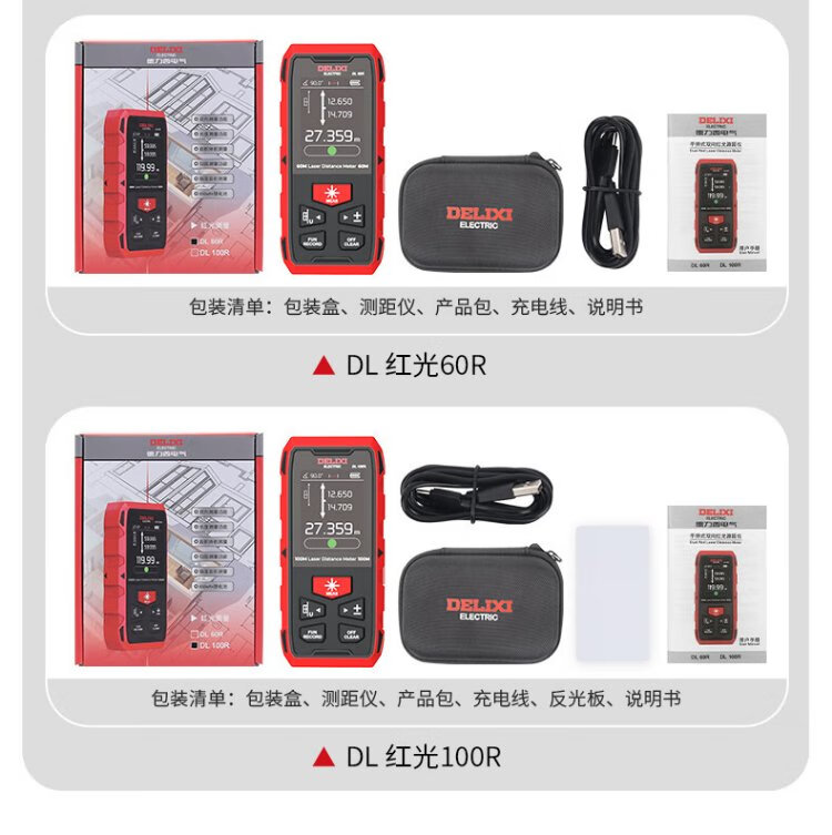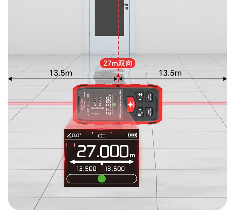 Delixi electrical distance meter high-precision infrared laser household electronic ruler two-way measuring instrument red light two-way 200 meters
