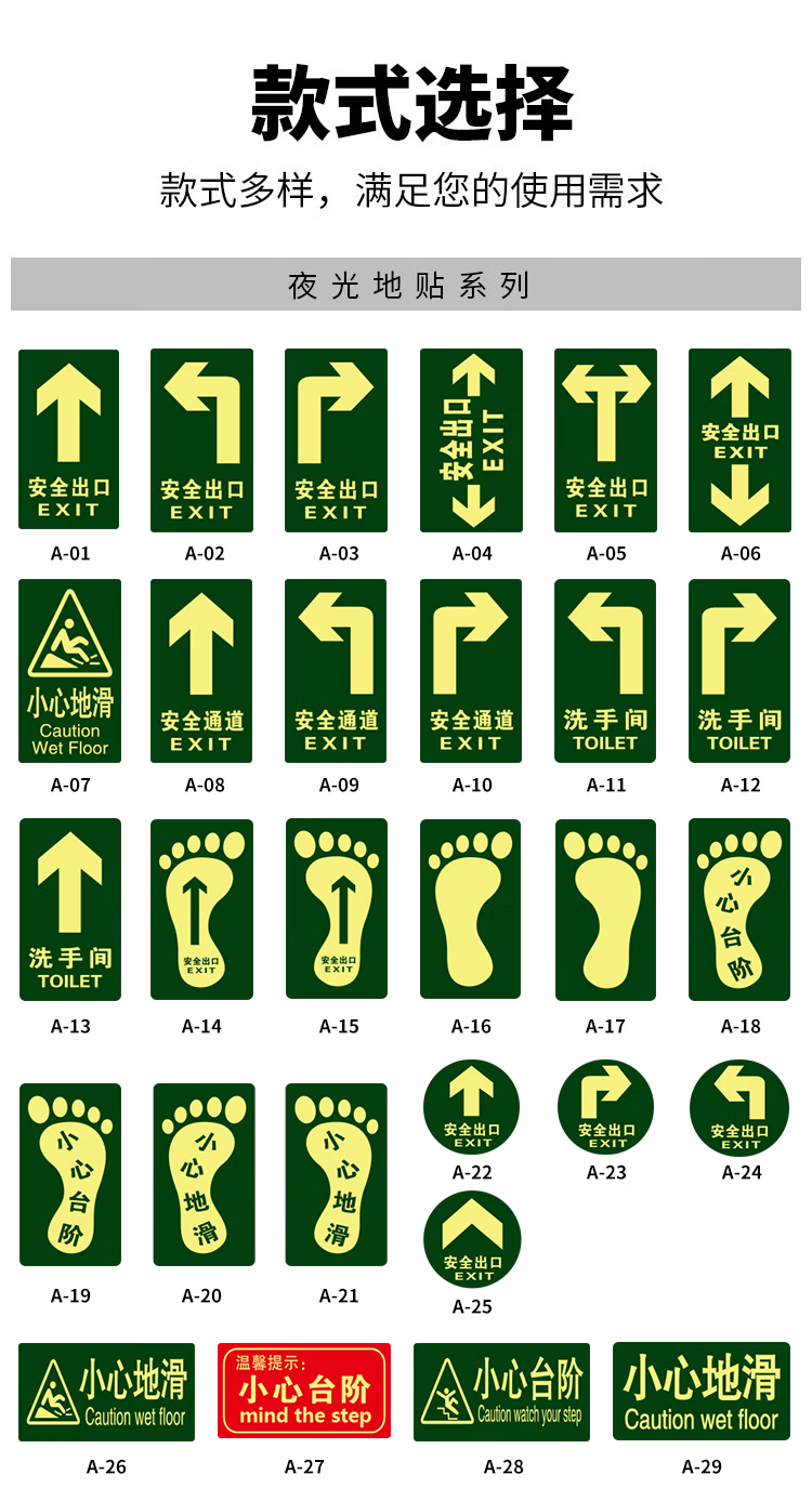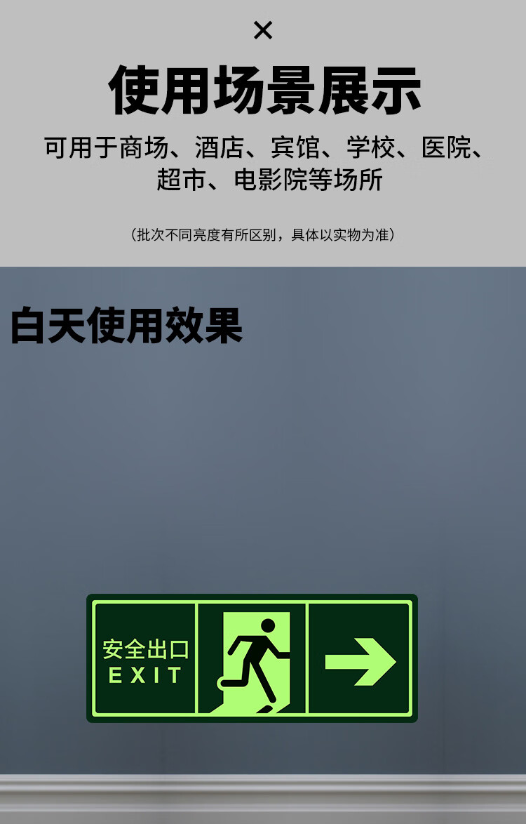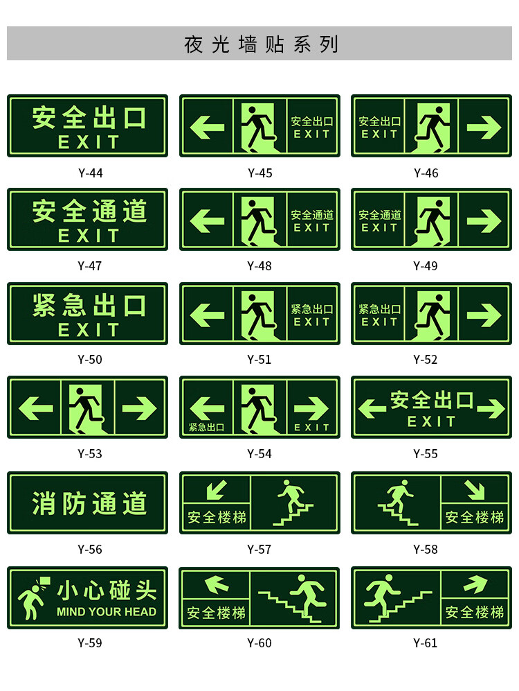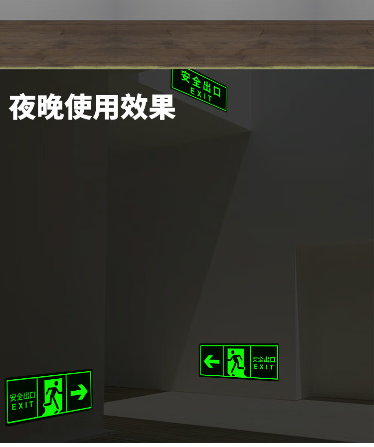 Yinchuanhui safety exit luminous sticker fire sign warning wall sticker emergency evacuation sign 14*36CM self-luminous sticker 5 sheets