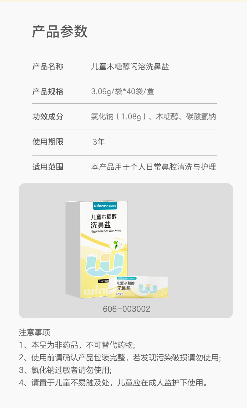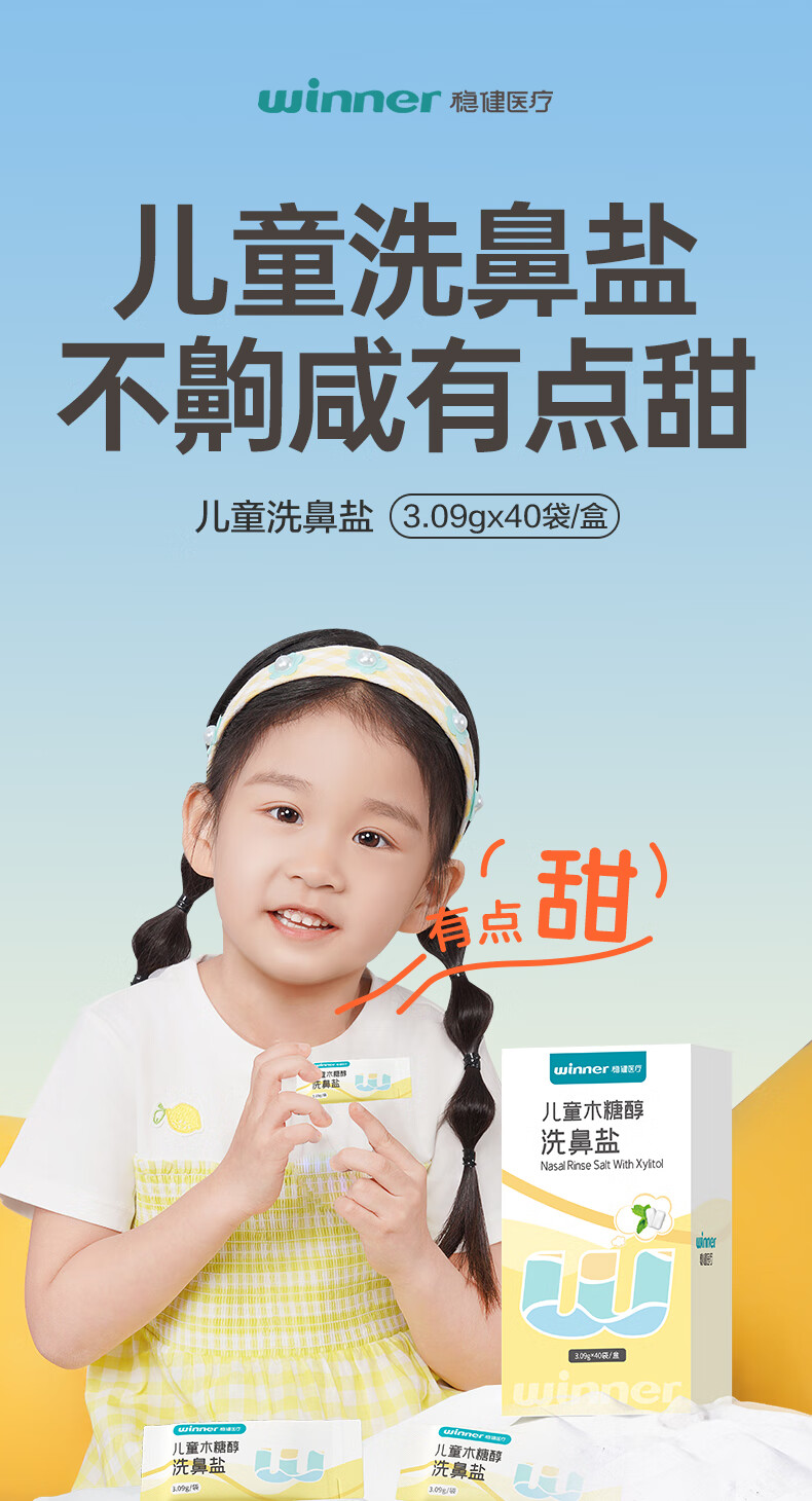 Robust nasal wash salt for children xylitol flash nasal wash salt saline nasal wash device special salt 3.09g*40 bags/box