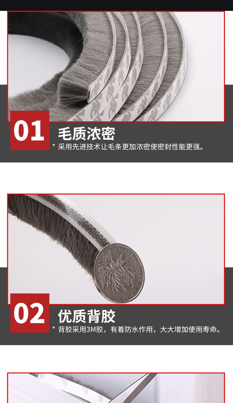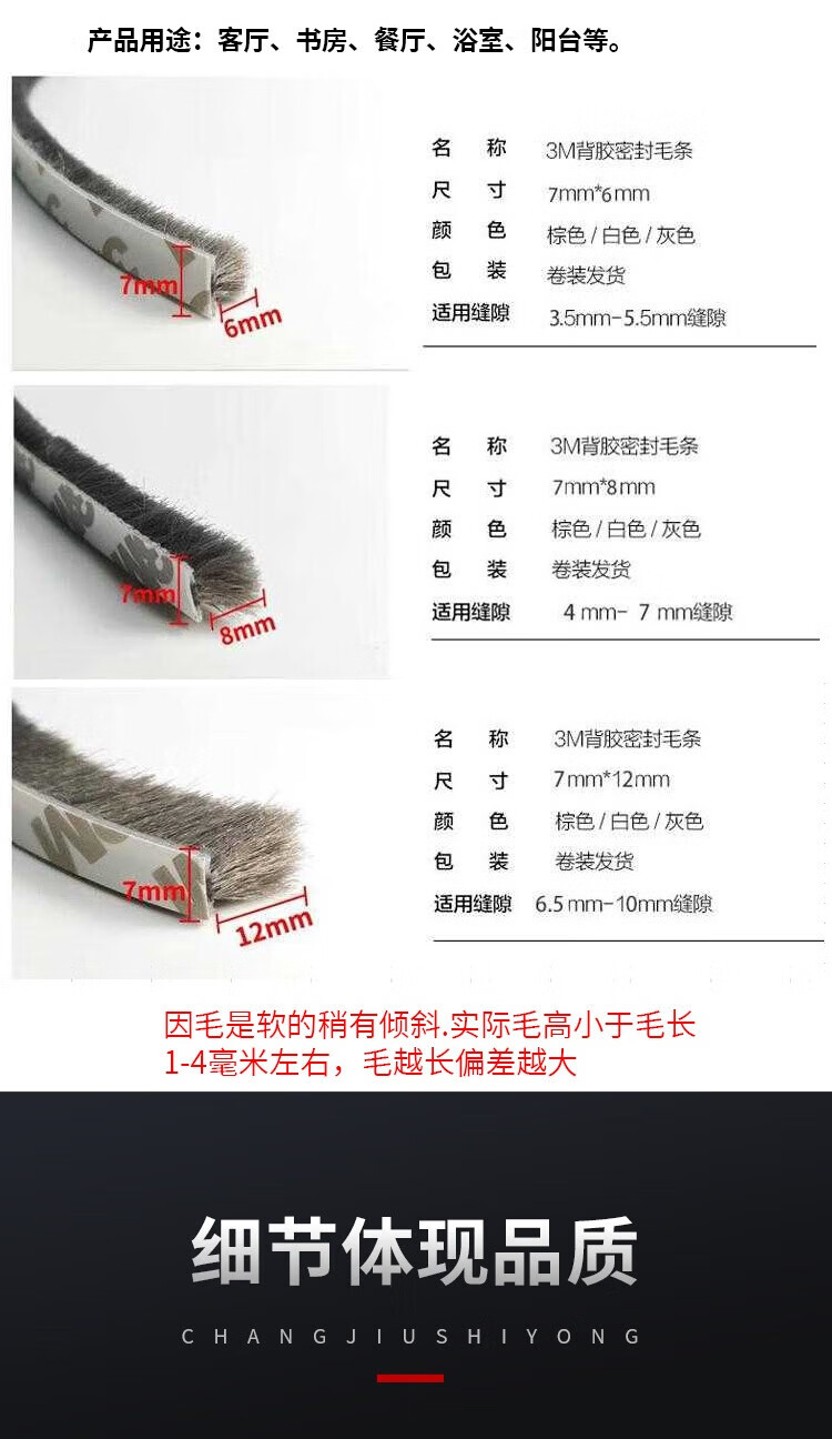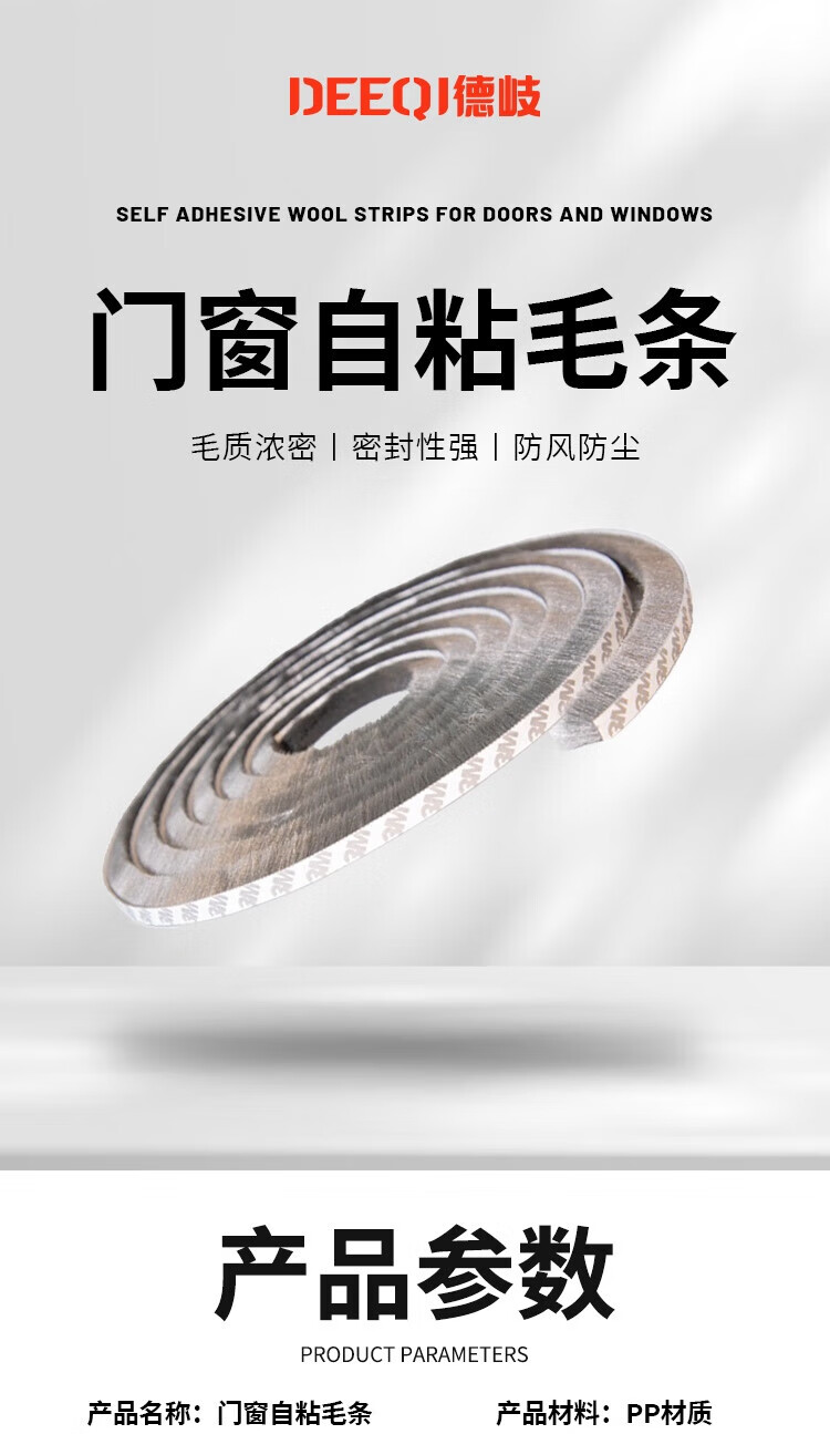 Deqi self-adhesive tops for doors and windows, anti-collision strips for sliding doors, windproof, warm and sound insulation strips for windows, self-adhesive tops, brown 7*6mm (10 meters/bundle)