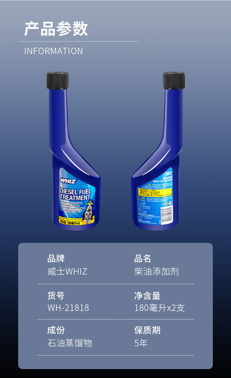WHIZ diesel additive fuel treasure engine carbon deposit cleaning agent to remove carbon deposits 180ml*2 bottles
