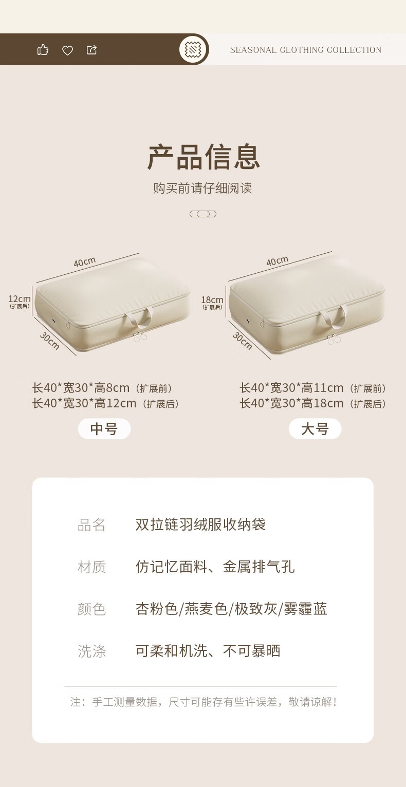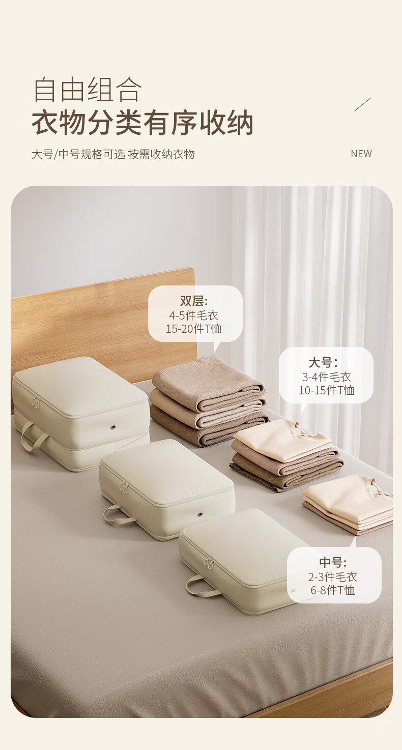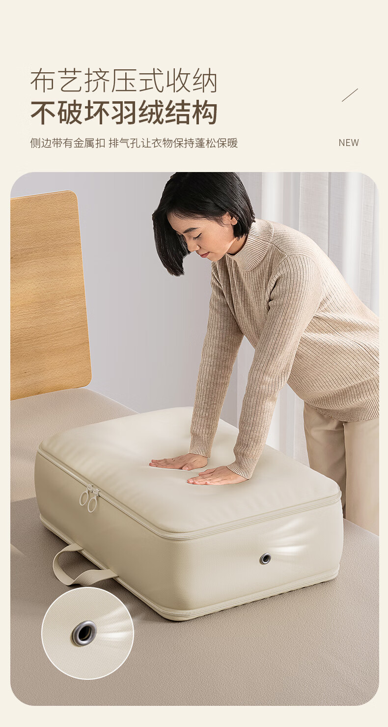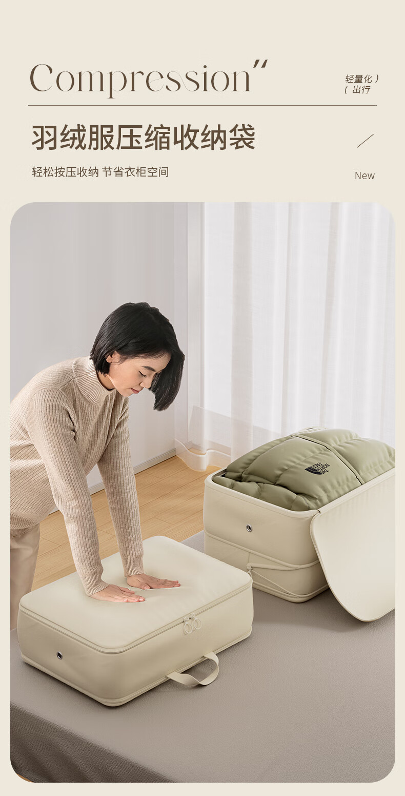 Bonnymeijia 2-pack down jacket storage bag portable travel clothes compressible suitcase quilt organizer bag beige