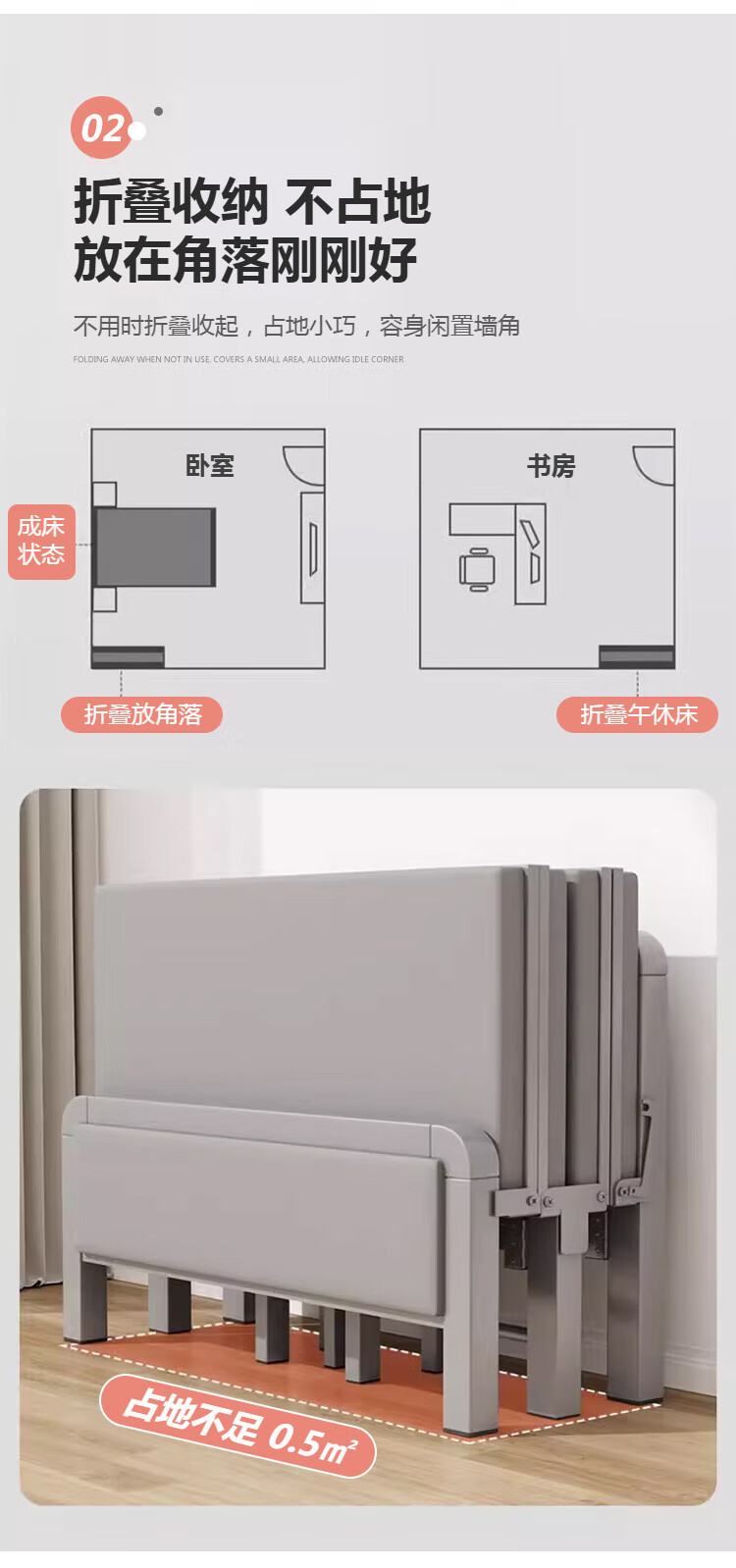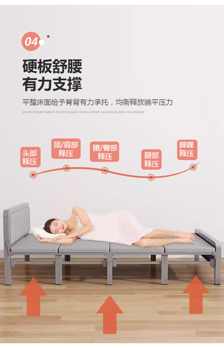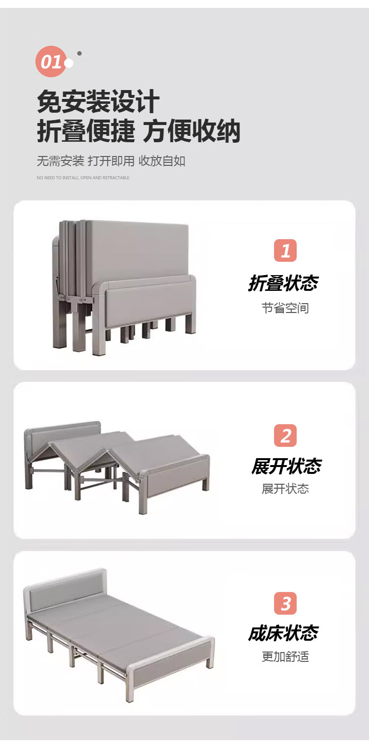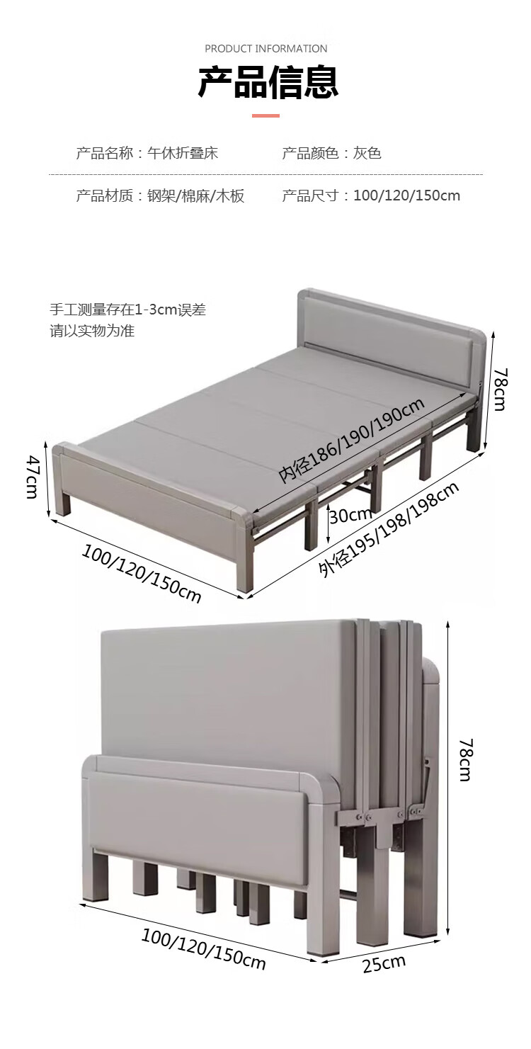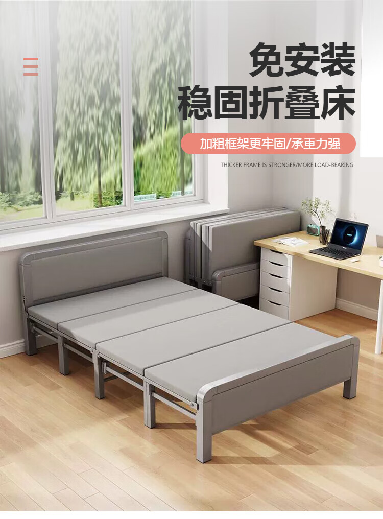 L&S folding sheet single bed office lunch break bed home companion bed hard bed BGC856 all gray 150cm