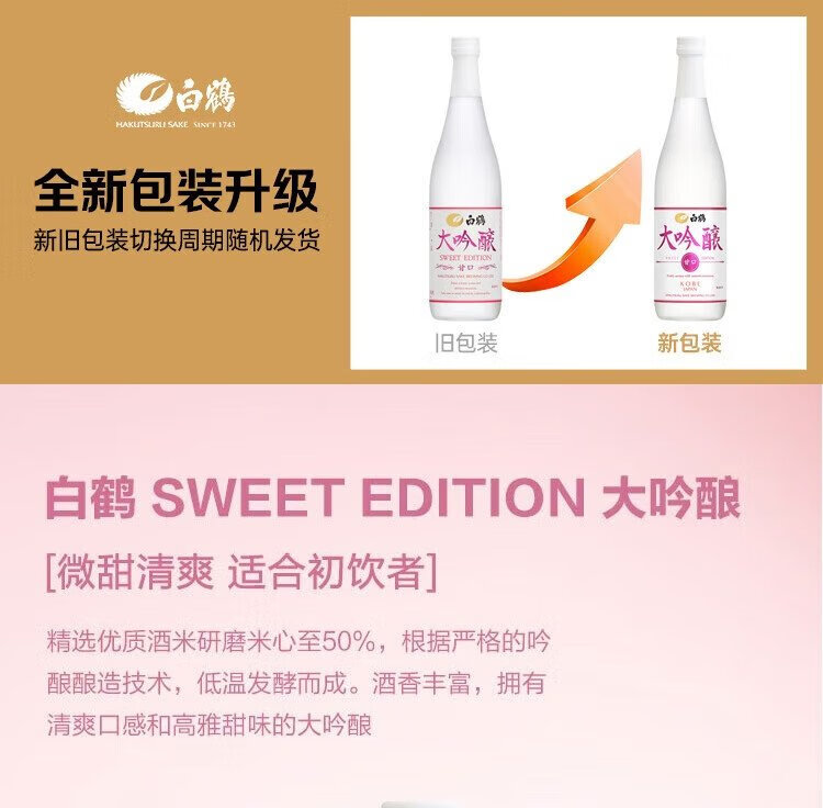Hakuhe Daiginjo Sweet 720ml Women's Good Night Wine Original Imported Japanese Sake New Year's Gift