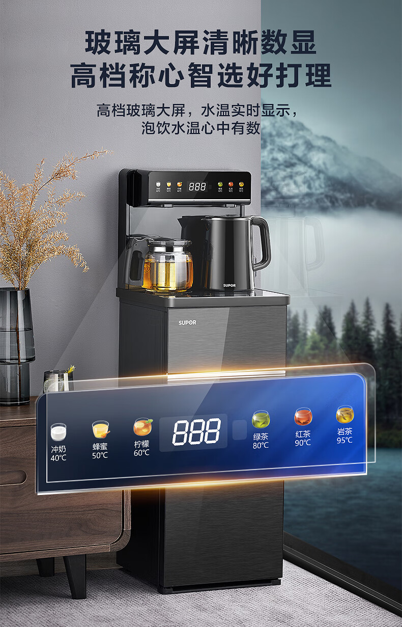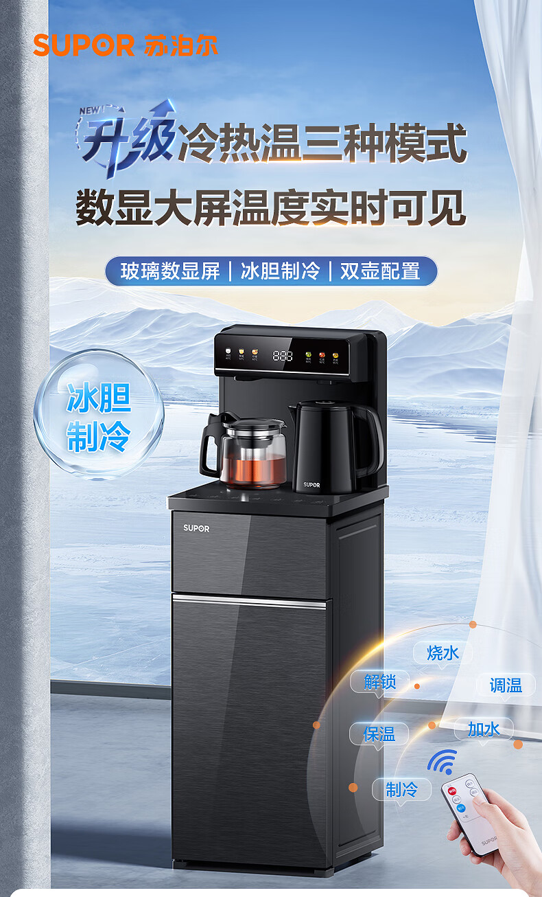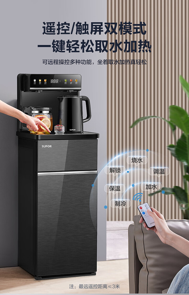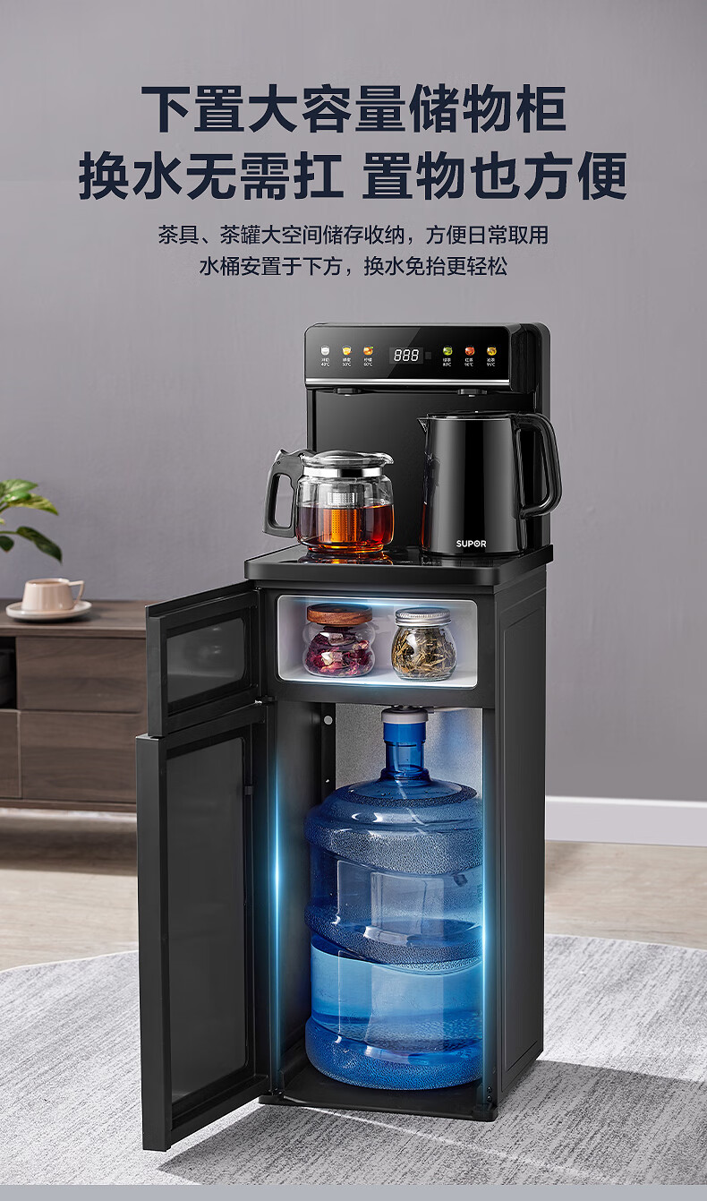 SUPOR Refrigerated Tea Bar Machine Home High-end Water Dispenser Remote Control Intelligent Lower Bucket Fully Automatic Temperature Control Vertical Cabinet Type Hot and Cold Multifunctional Tea Maker SW-CBJ27C
