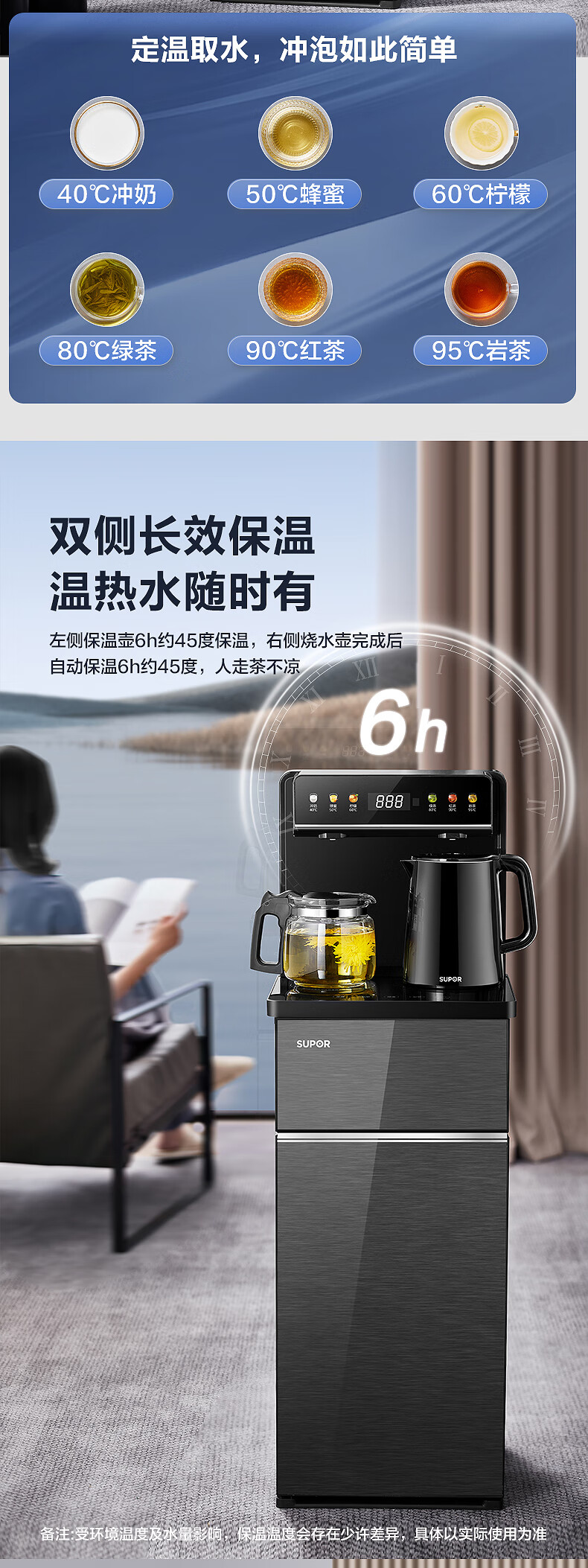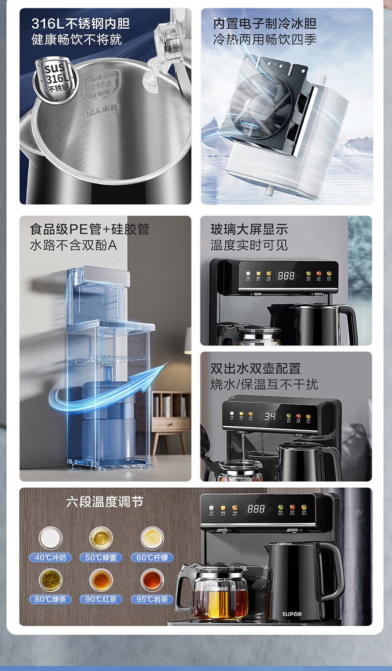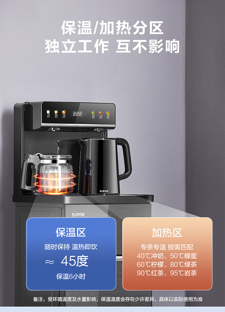 SUPOR Refrigerated Tea Bar Machine Home High-end Water Dispenser Remote Control Intelligent Lower Bucket Fully Automatic Temperature Control Vertical Cabinet Type Hot and Cold Multifunctional Tea Maker SW-CBJ27C