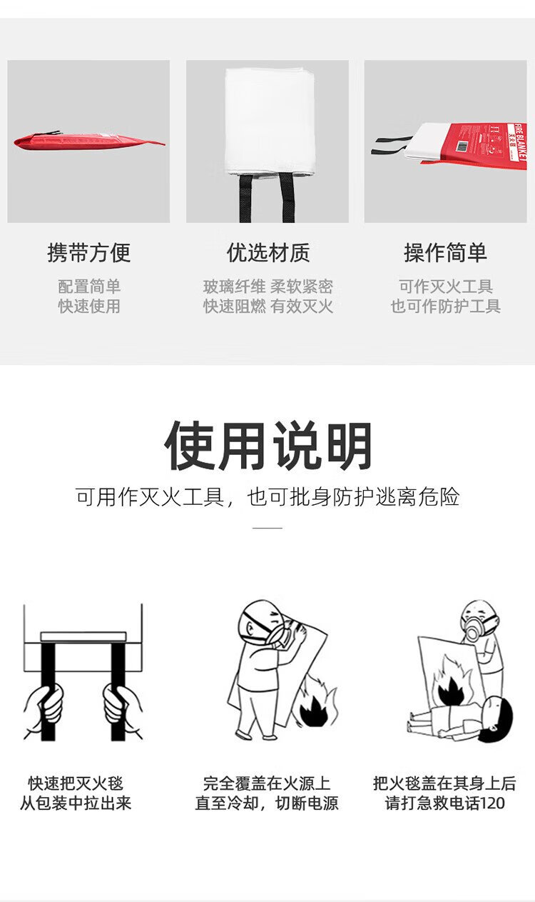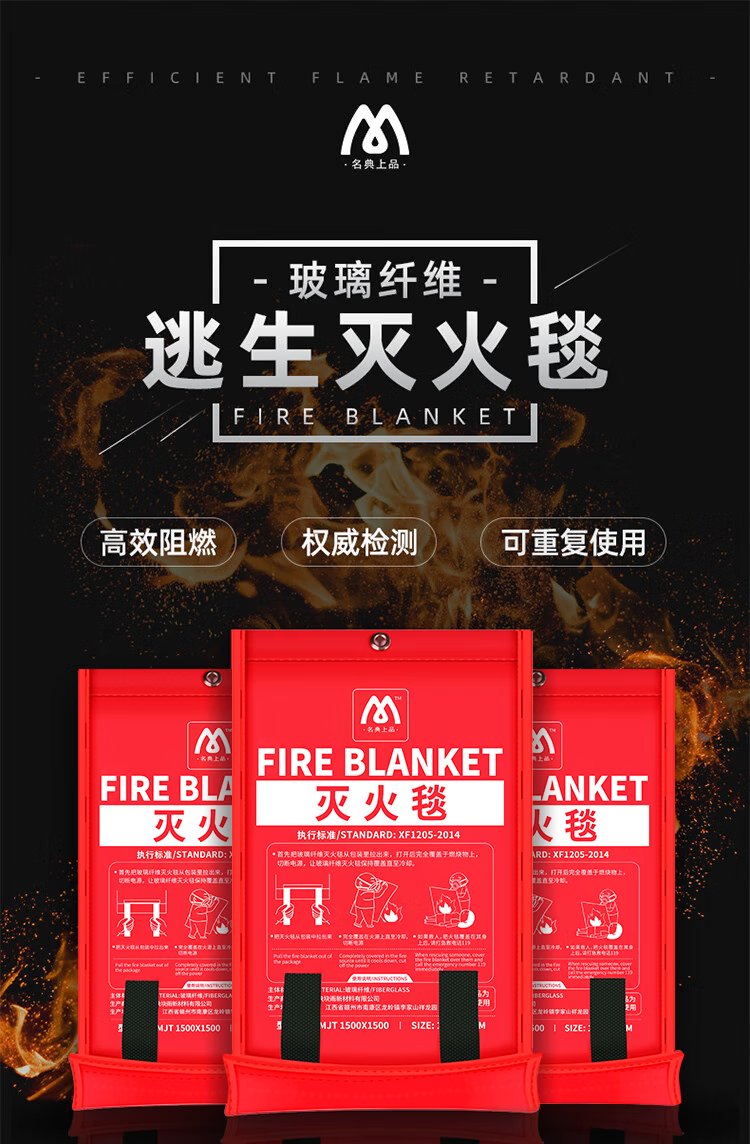 Mingdian top quality fire blanket 1.5M*1.5M fiberglass material bagged highly efficient flame retardant used with fire extinguisher for home, vehicle and factory emergency