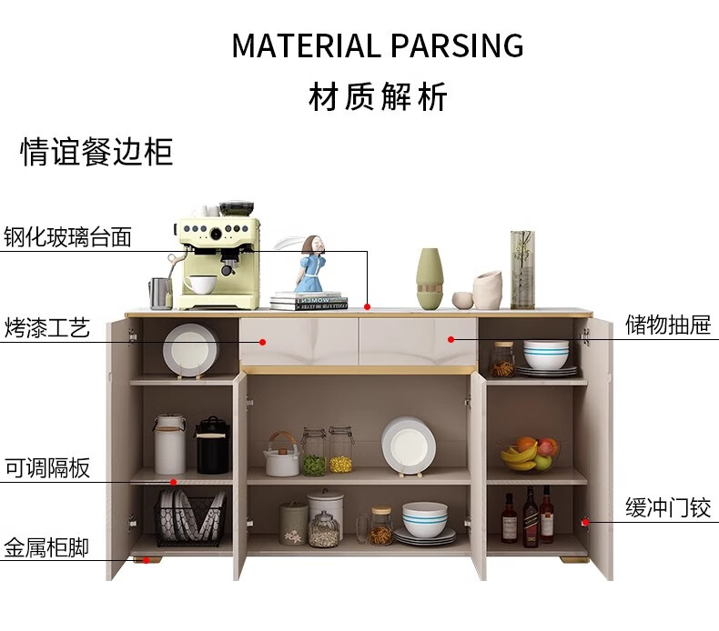 Zhixin Muwang light luxury paint sideboard integrated wall cabinet storage wine cabinet storage cabinet living room multi-functional tea cabinet cupboard