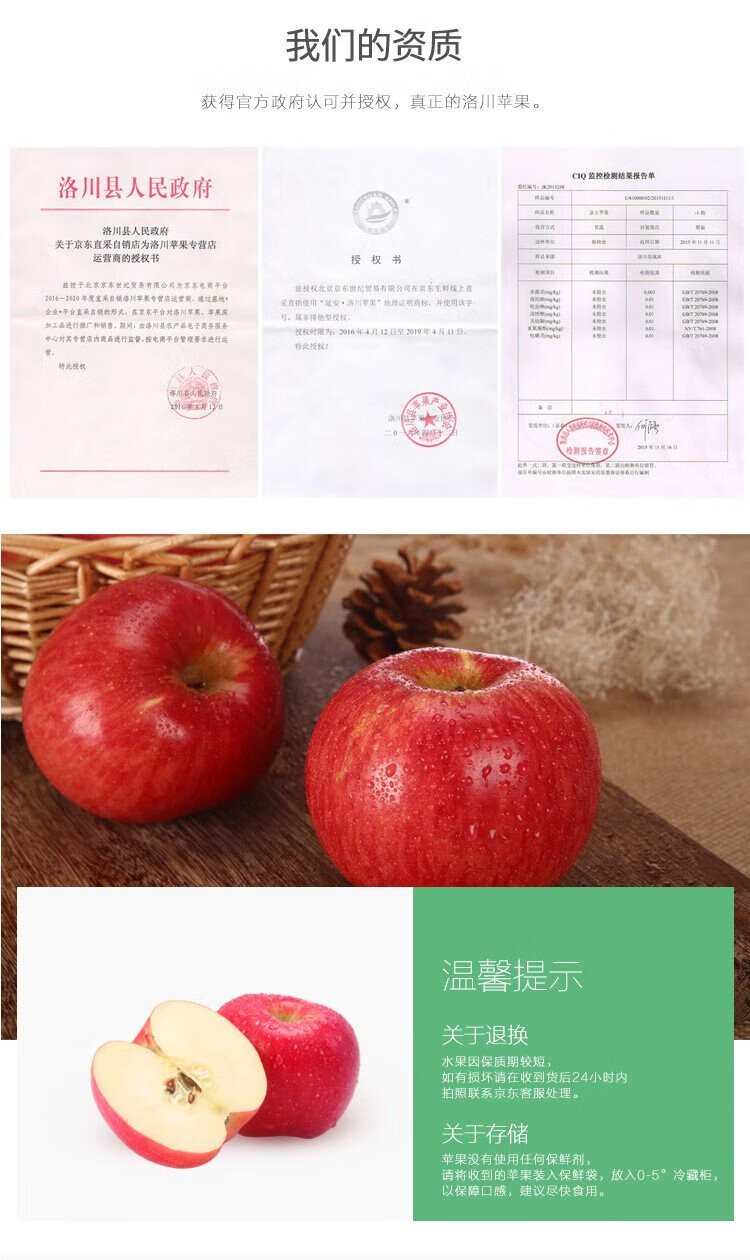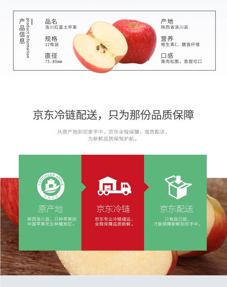 Jingxiansheng Shaanxi Luochuan Apple Red Fuji, net weight 5 pounds, single fruit 200g+, also delivered during the Spring Festival