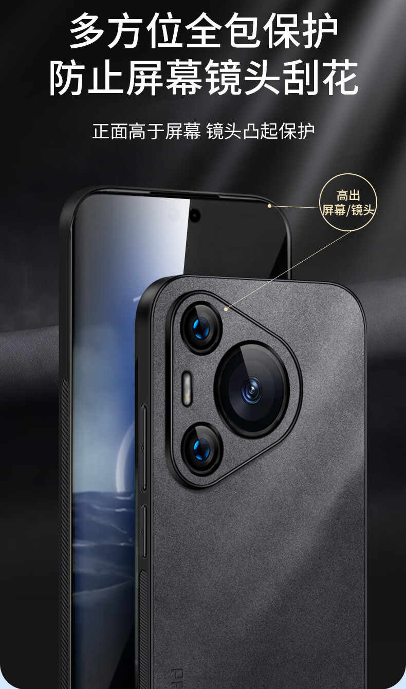 Shang Su is suitable for Huawei Pura70 mobile phone case, Huawei P70 protective cover, anti-fall all-inclusive soft shell, simple and light luxury lambskin silicone case, women's and men's leather case black