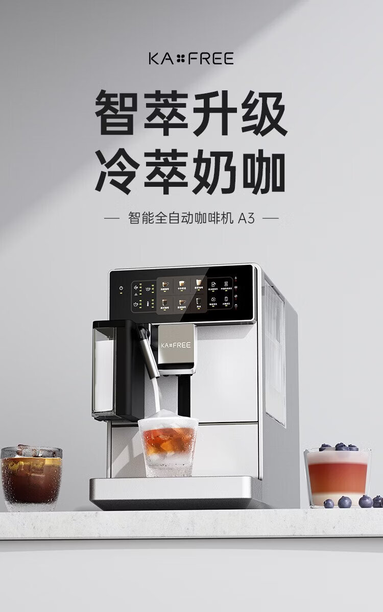 Coffee freedom (KAxFREE) coffee machine, household cold brew fully automatic coffee machine, Italian freshly ground automatic milk foam Mianyun milk coffee A3 Qianyun silver New year gift