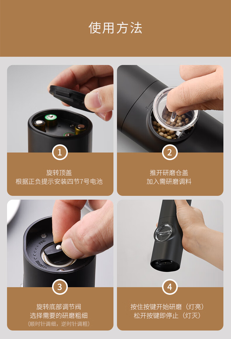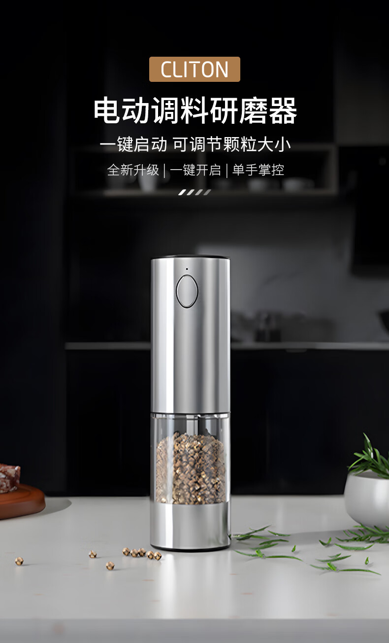 CLITON electric pepper grinder household pepper sea salt electric grinder kitchen pepper grinding bottle seasoning bottle jar