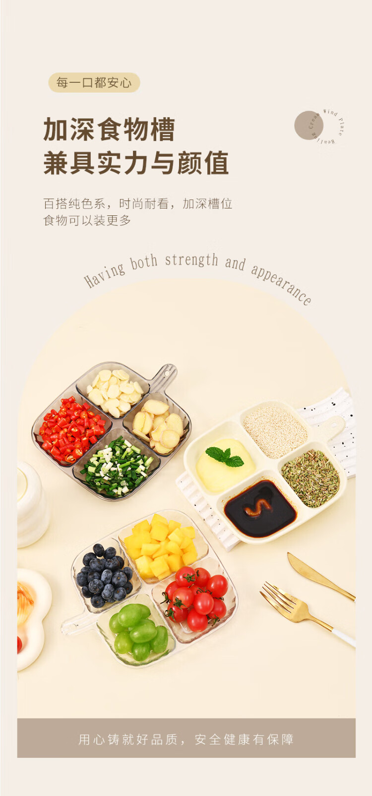 Baijie home-compartmented side dish ingredients green onion ginger garlic storage plate spit bone plate vinegar dish preparation plate 2 pieces