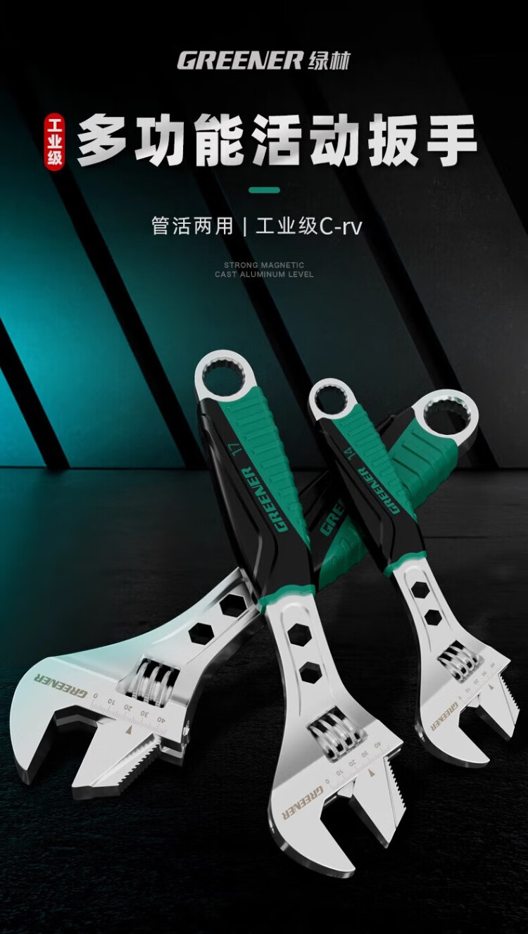 Green forest adjustable wrench multi-functional household universal adjustable wrench 15-inch open bathroom wrench live wrench